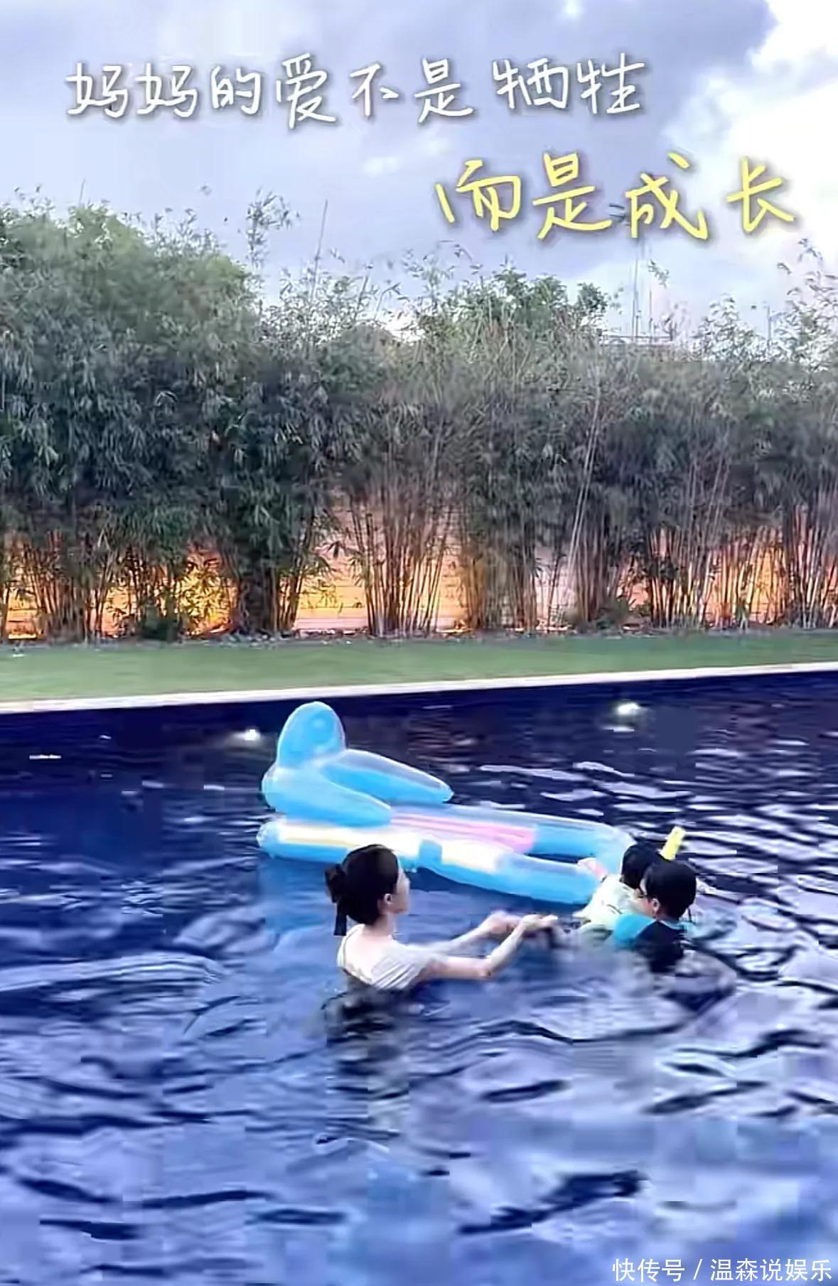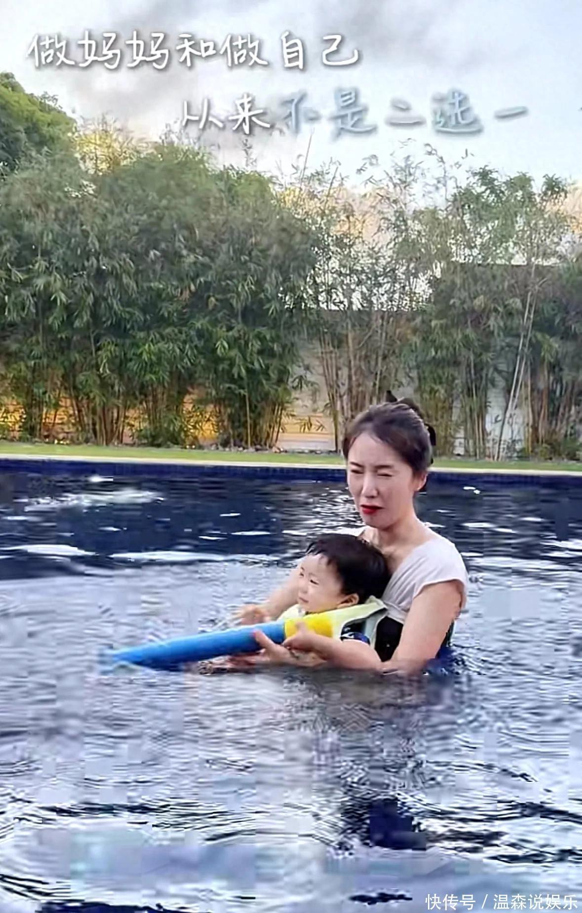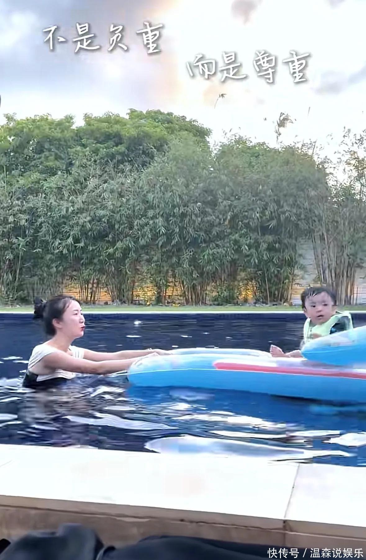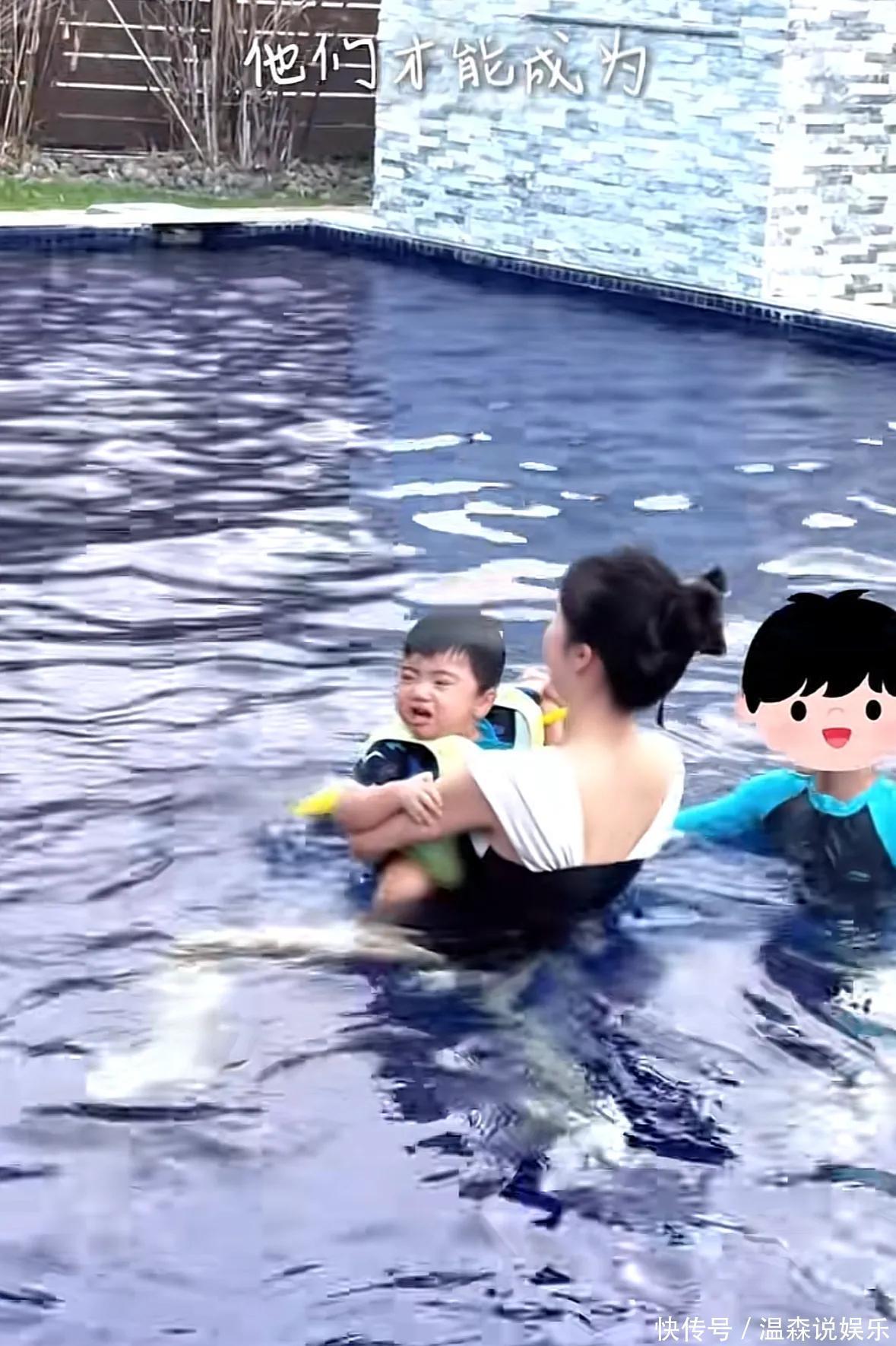 她兩歲多的小兒子活潑可愛,皮膚白皙,圓溜溜的大眼睛特別有神,小家伙玩水時笑得特別開心,時不時濺起水花,模樣萌態(tài)可掬,十歲的二兒子難得出鏡,這小伙子面容清秀、氣質(zhì)俊朗,身高幾近趕上媽媽,在水中,他始終悉心呵護(hù)弟弟,動作嫻熟且溫柔,儼然是個頗具責(zé)任心的小哥哥。