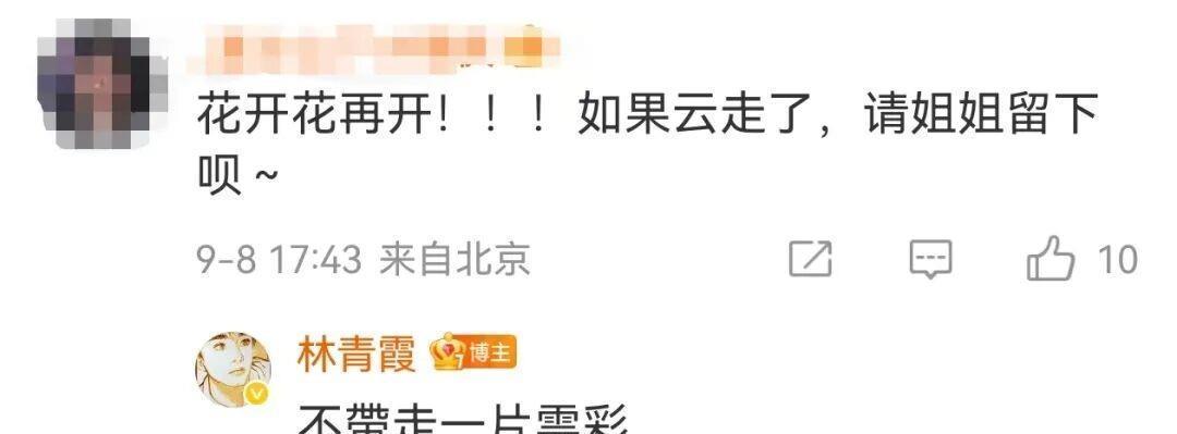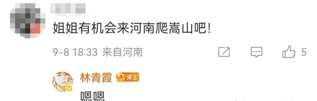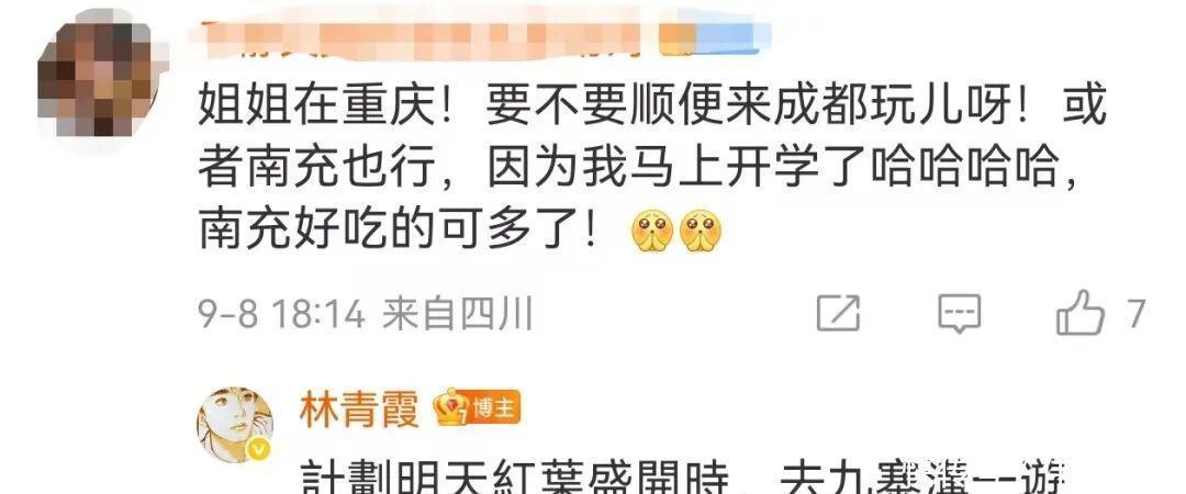 还有不少网友推荐去自己的家乡旅游,林青霞不时用“嗯嗯”回复,她还表示,“计划红叶盛开时,去九寨沟游一趟”。