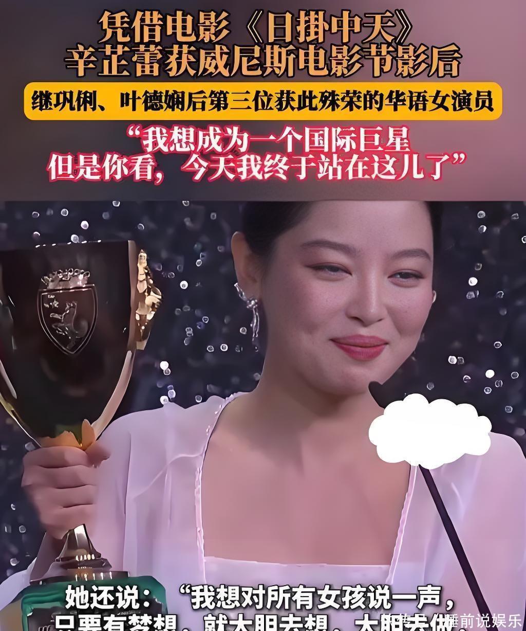 2025年9月6日,意大利威尼斯的夜幕下,一場(chǎng)屬于中國(guó)演員的榮耀風(fēng)暴席卷全球。第82屆威尼斯國(guó)際電影節(jié)頒獎(jiǎng)禮上,39歲的辛芷蕾憑借《日掛中天》中“美云”一角斬獲最佳女演員,成為首位獲此殊榮的中國(guó)85后女演員。當(dāng)她身著香奈兒高定禮服,手握獎(jiǎng)杯說(shuō)出“當(dāng)年吹的牛,如今都成了真”時(shí),這場(chǎng)跨越18年的逆襲,終于從“癡人說(shuō)夢(mèng)”變成了現(xiàn)實(shí)。