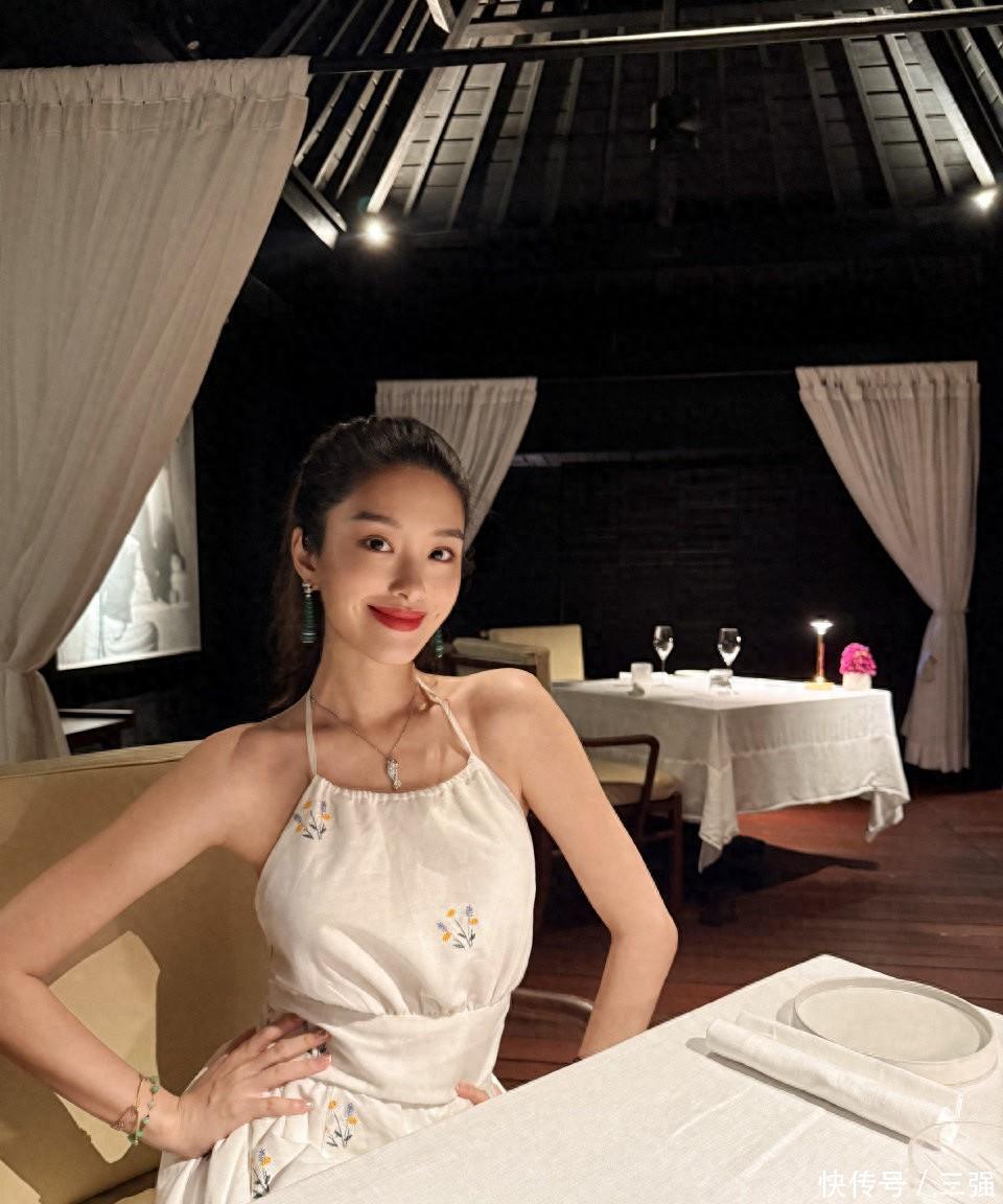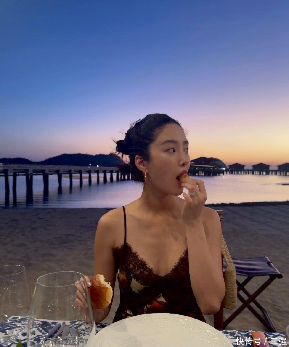 32歲楊采鈺產(chǎn)后身材太好!穿吊帶裙在印尼度假,戴著婚戒大吃大喝