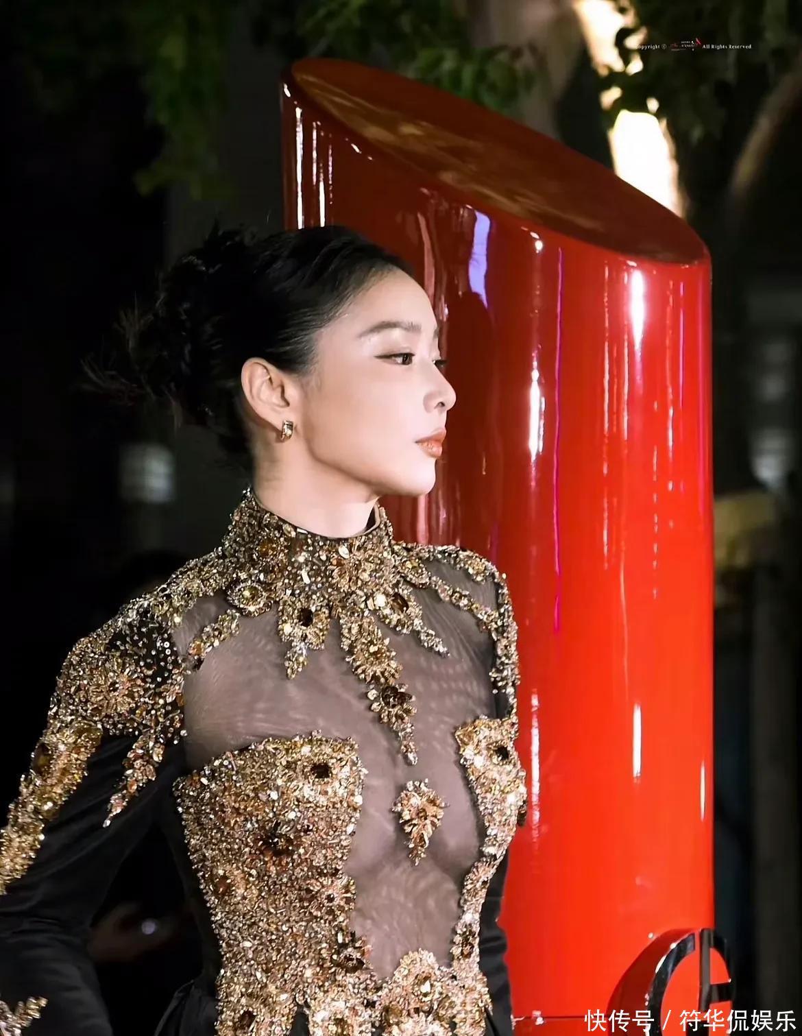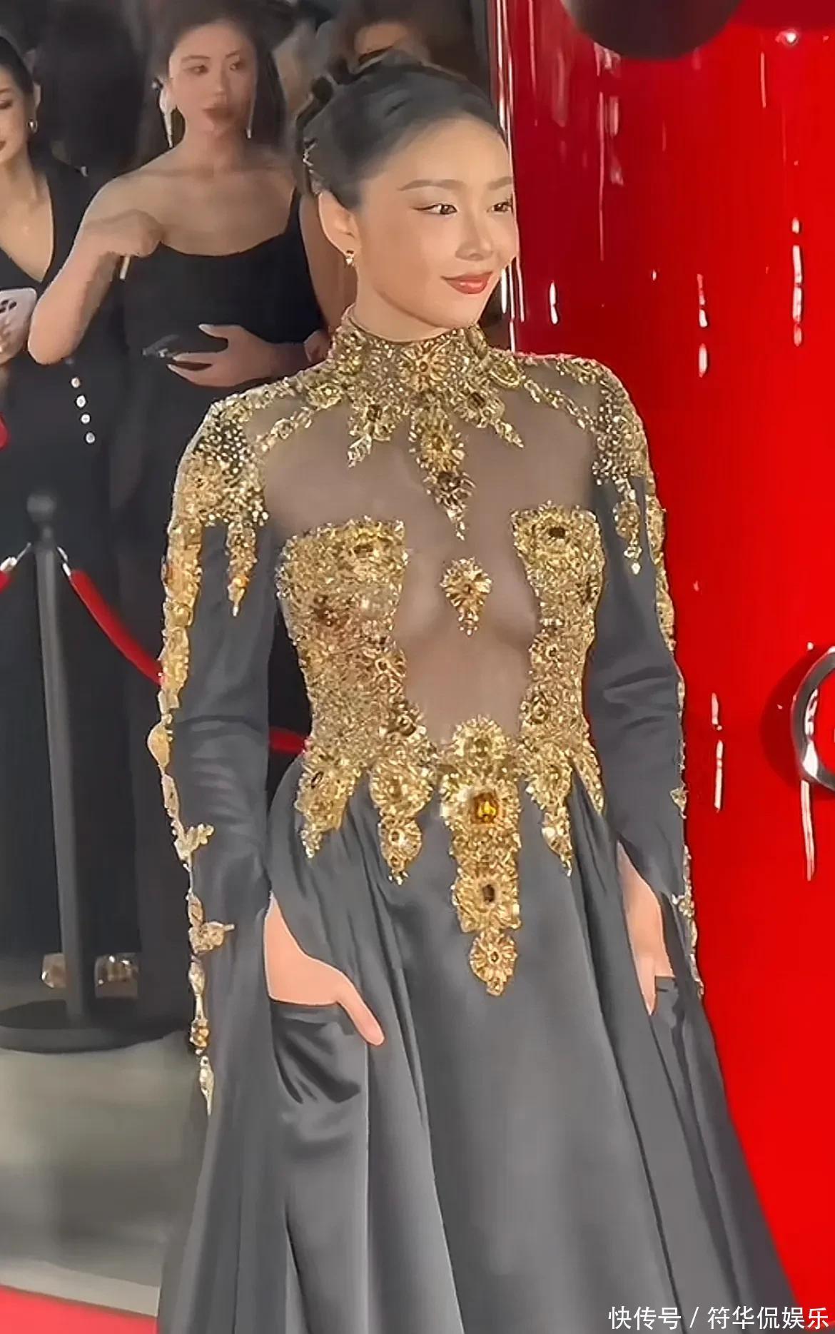 01 造型解析:如何把“危險禮服”穿出高級感?這套禮服堪稱“紅毯高風(fēng)險款”:金色刺繡量感十足易顯壯,透視設(shè)計對身材線條要求苛刻。但高葉用三大技巧化解危機:· 發(fā)型與配飾做減法:利落盤發(fā)凸顯天鵝頸,只配一對金色耳墜,避免冗余感;· 氣場優(yōu)先策略:挺直肩背的儀態(tài)+從容表情,讓焦點從“裸露度”轉(zhuǎn)向“掌控感”;· 巧妙揚長避短:利用大骨架優(yōu)勢撐起華麗刺繡,反而穿出窄腰寬肩的沙漏曲線。網(wǎng)友辣評:“這身衣服換個人穿可能是災(zāi)難,但她卻像為戰(zhàn)袍注入了靈魂!”