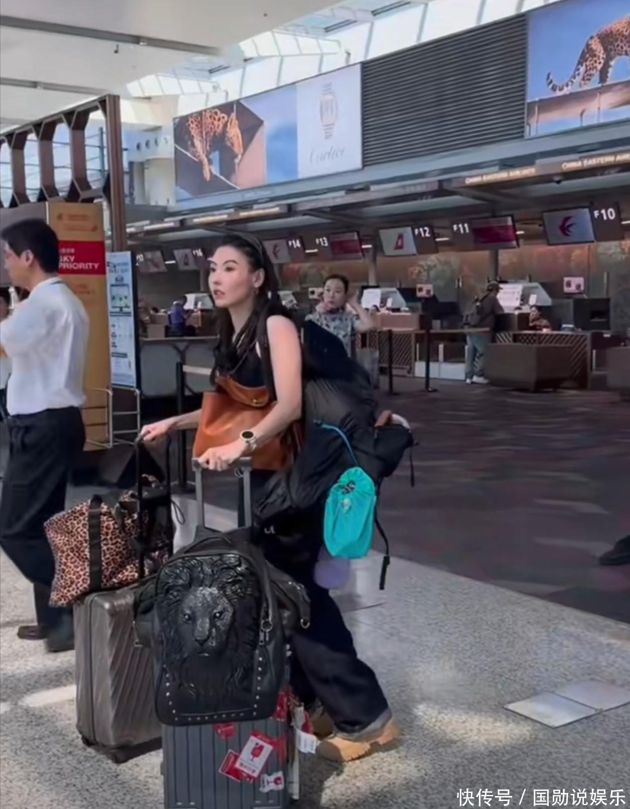 只見打扮得很精致的張柏芝,戴著黑色墨鏡,但身上卻掛了大大小小7個包。不少人調(diào)侃:光看背影,都不敢認這是張柏芝。