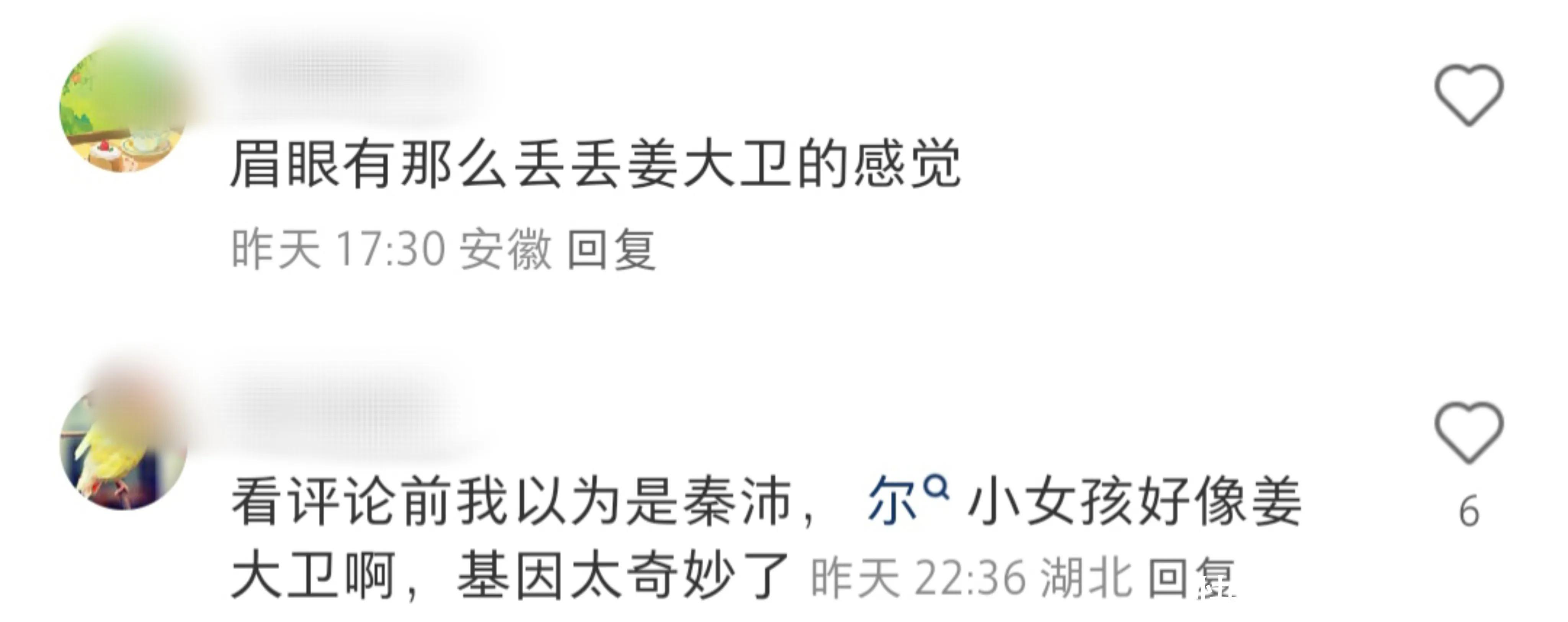 秦沛姜大衛(wèi)都很喜歡Teresa這個年幼的侄女,比如5月份的時候,三兄弟久違拍合影,Teresa也在場,調(diào)皮的她不停搗亂。