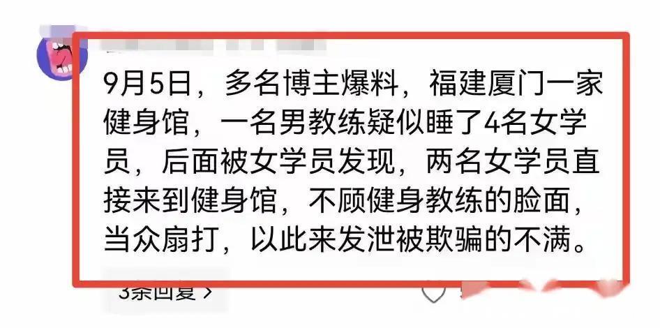 近幾日,廈門一健身房內(nèi)的男教練被指與多名女學(xué)員保持不正當(dāng)關(guān)系,現(xiàn)場爆發(fā)的沖突視頻引發(fā)了網(wǎng)友們的熱議。這種情感糾葛在健身房并不罕見,然而這次事件卻讓我們不得不猜想,教練與學(xué)員之間的關(guān)系到底該如何定義?是純粹的師生關(guān)系,還是潛藏著更復(fù)雜的情感?想知道更多內(nèi)幕,繼續(xù)往下看!