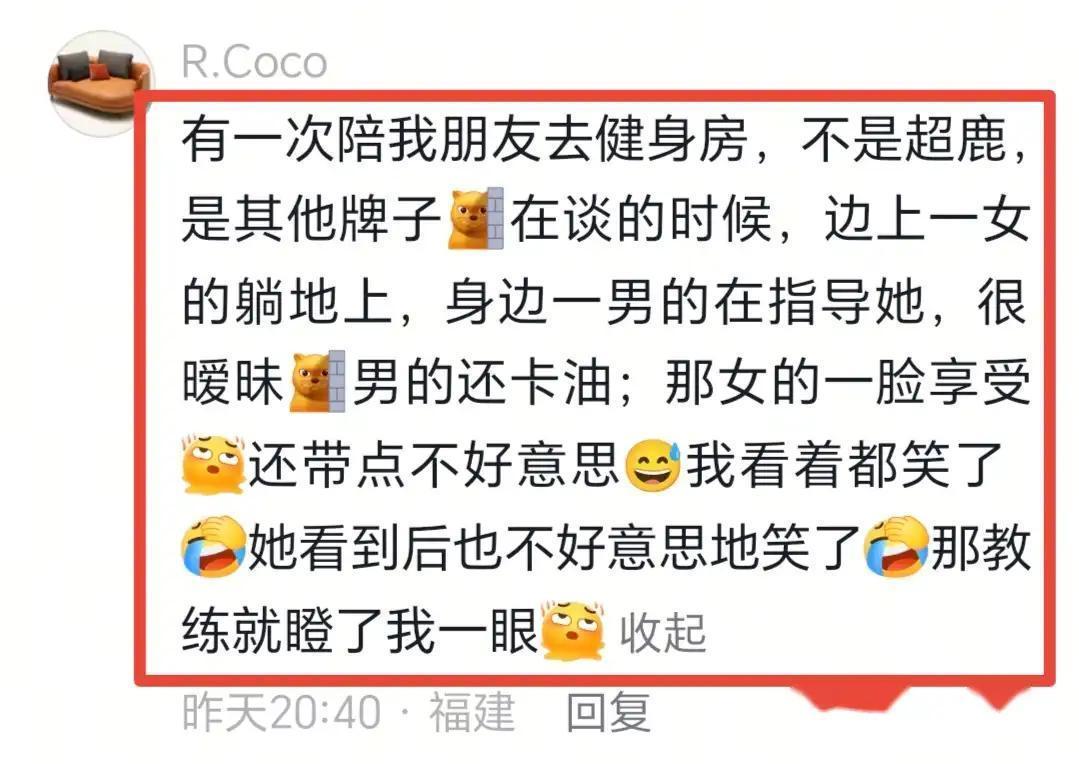 這起事件發(fā)生在廈門的一家健身房,名為超鹿。