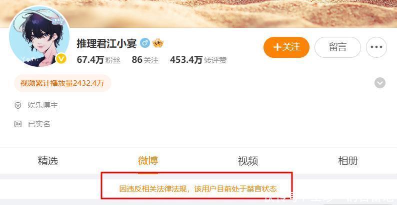 截至筆者發(fā)稿,“名偵探小宴”因?yàn)檫`反相關(guān)法律法規(guī),已經(jīng)被平臺禁言。