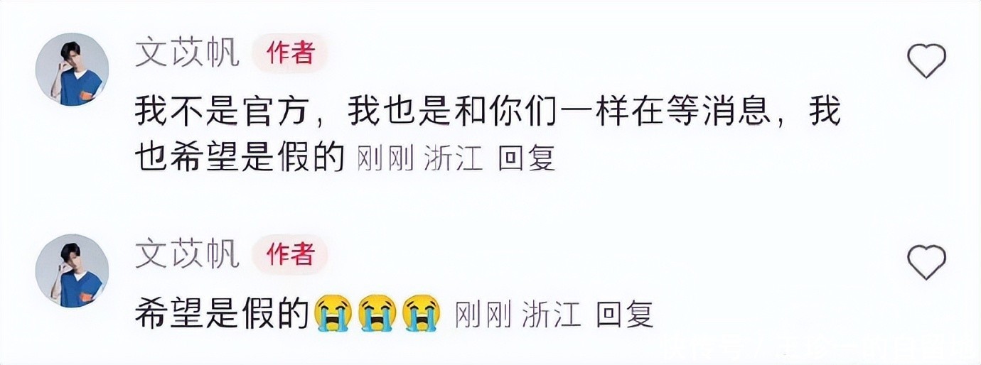 他們這一發(fā)文,網(wǎng)友都以為消息屬實(shí),但邢菲、文苡帆發(fā)文沒多久就刪文了,他們表示他們也在等消息,希望網(wǎng)傳消息是假的。