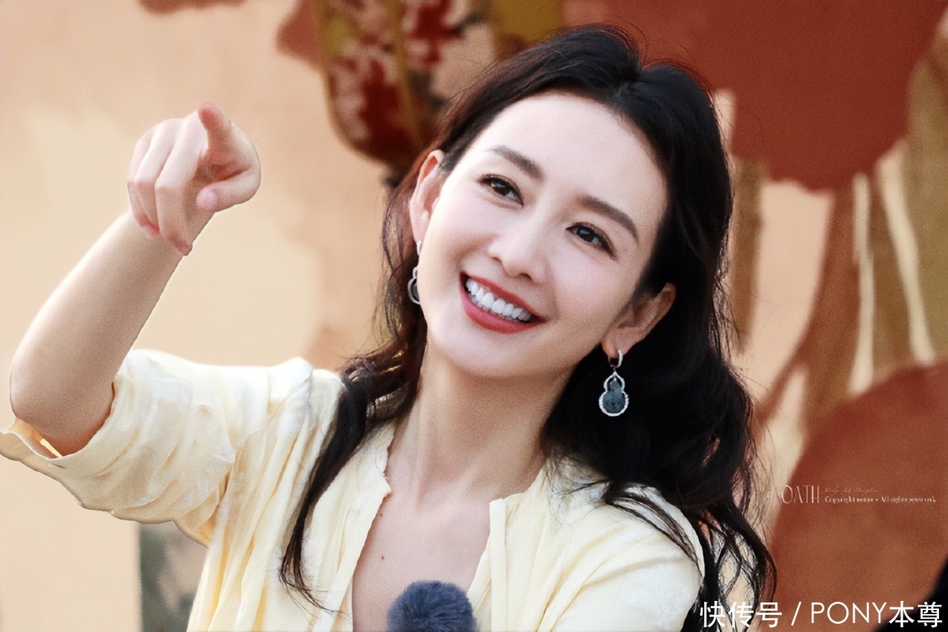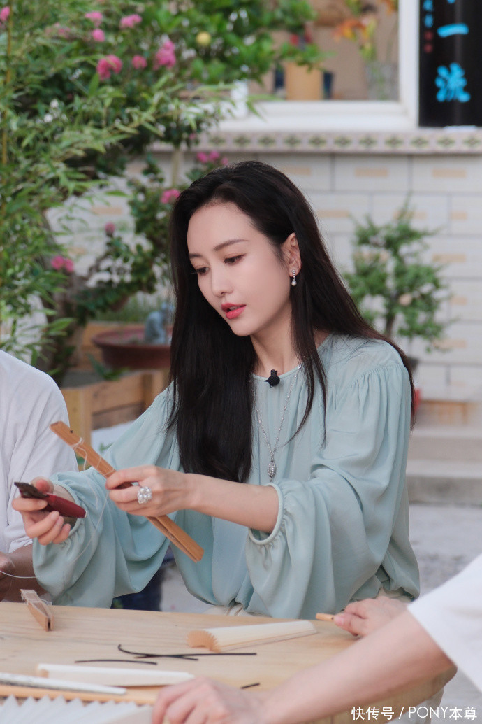 又比如在一次節(jié)目中,她身穿一襲低飽和度綠色長袖連衣裙,搭配銀色耳環(huán)和戒指,整體色調(diào)和諧統(tǒng)一又不失層次感 。