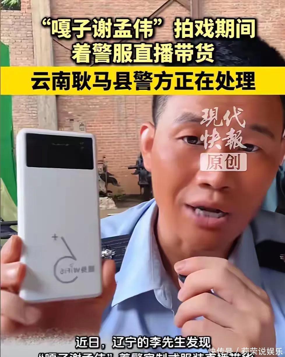 9月10日上午,有網(wǎng)友發(fā)現(xiàn)嘎子謝孟偉在網(wǎng)絡(luò)平臺直播時,身著人民警察制式服裝。視頻里的他,雖未佩戴警號與胸徽,但肩章和臂章清晰可見。他一邊與粉絲互動,一邊售賣一款充電寶與隨身WiFi二合一的電子產(chǎn)品。