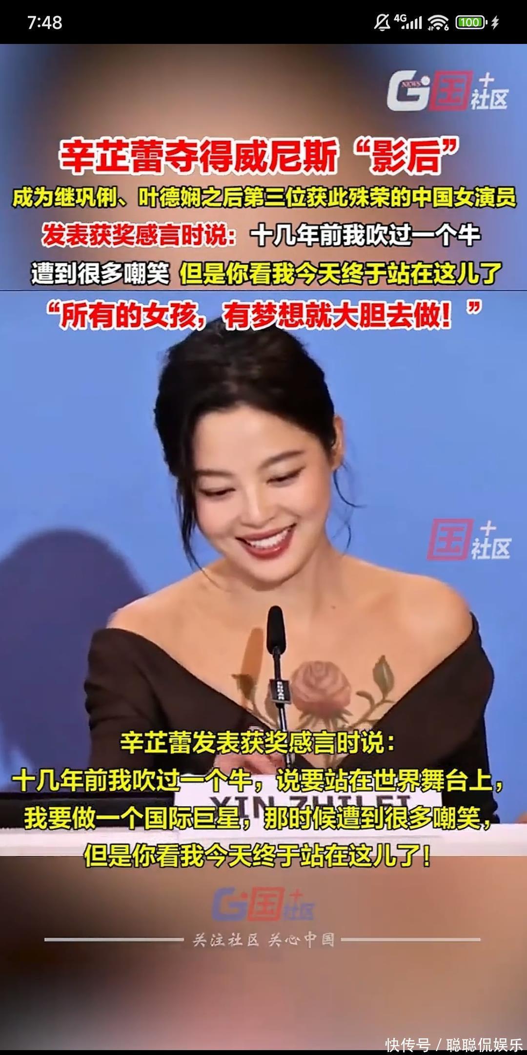 最戳人的是辛芷蕾的获奖感言。她自年前刚入行时曾放话“要当国际巨星”,结果被群嘲“太狂”。如今站在领奖台上,她笑着打断翻译:“我还没说完?!?#38543后哽咽着说:“今天我站在这里,想对所有女孩说:大胆做梦,万一实现了呢?”台下掌声雷动,镜头扫过评委席,同为华语影后的赵涛正含泪鼓掌。