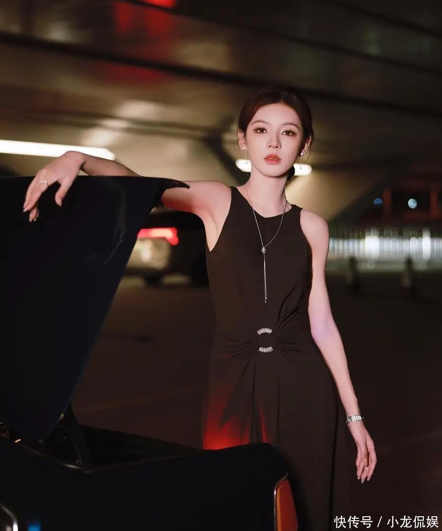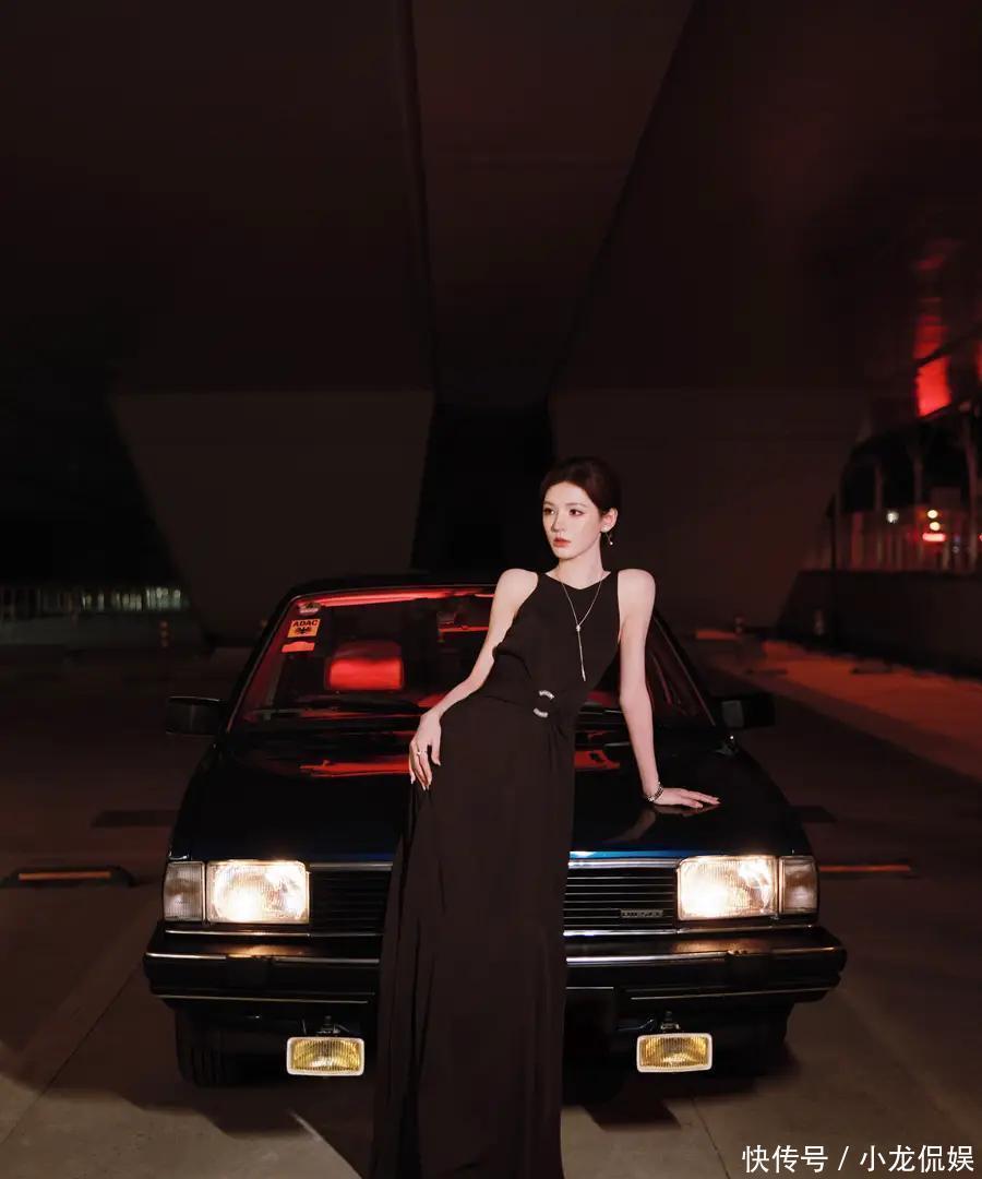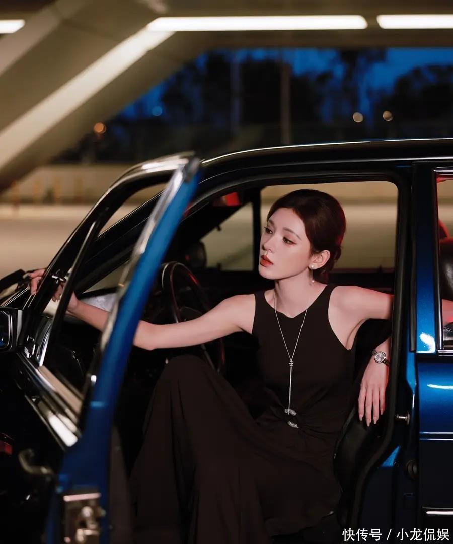 张予曦这组图一出来,我就点开了。棕色无袖裙,低丸子头,靠着一辆车。就这么简单。但你发现没有,越是这种随意拍,越能看出门道。
