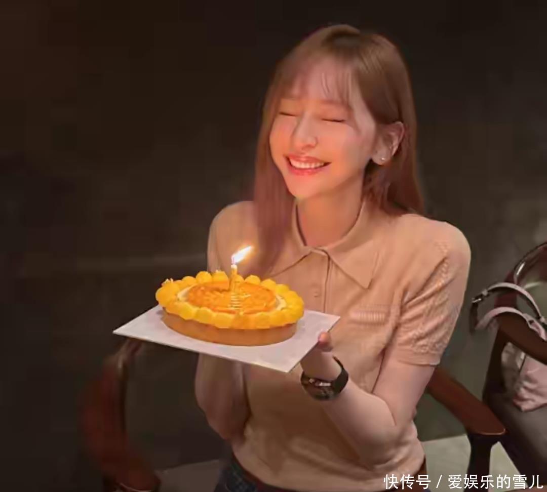 后面她还发了第二波派对照,风格又不一样了。卡其色针织翻领短袖配牛仔裤,特别休闲,但星星范儿一点没少。手里的蛋糕虽然简单,但配上她暖暖的笑,看着就特别温馨。感觉这两套穿搭一下子让我看到了她的不同面,既有精致的一面,也有生活里真实自然的样子,特别亲切。