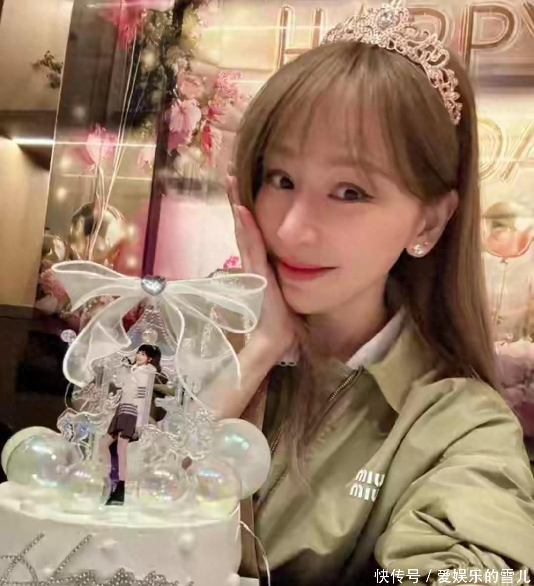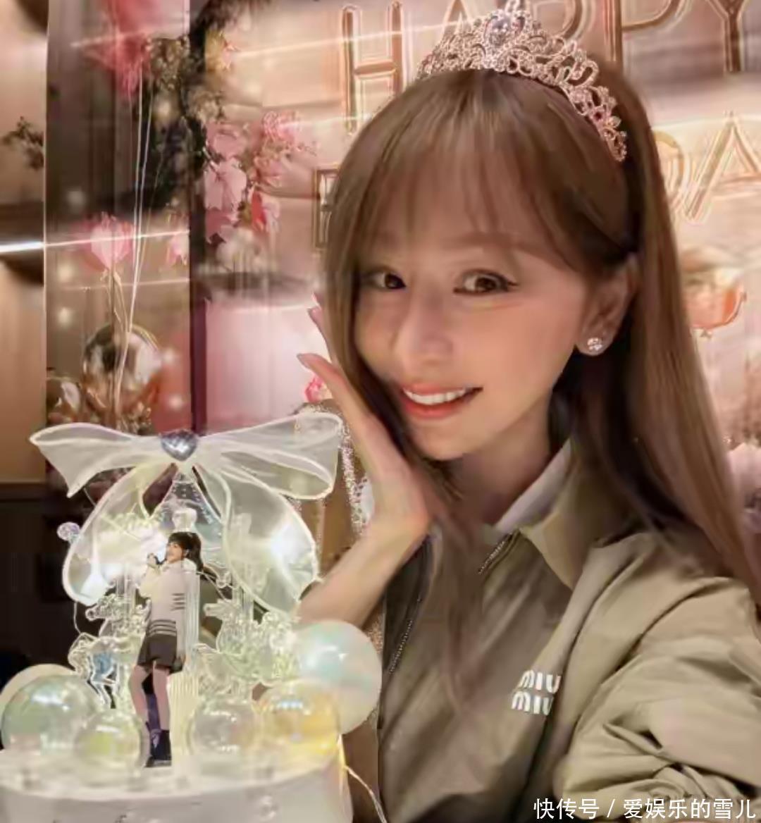 而且那个生日蛋糕也超戳人!不是那种普通的款式,上面有蝴蝶结、珍珠气泡,居然还放了个迷你人形立牌,是她演唱会的经典造型,也太用心了吧!难怪粉丝会说“这蛋糕比我还懂王心凌”,换谁看了都会觉得“好有爱”!