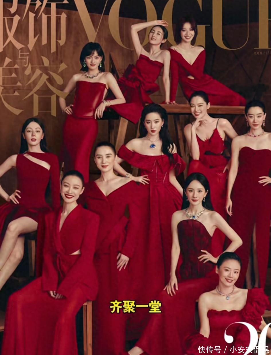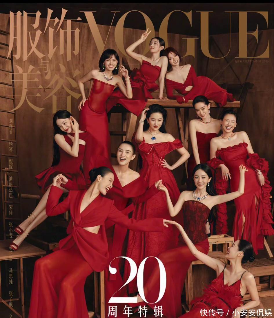 时尚界向来有“金九银十”之说,这期的杂志是一年中含金量最高的月份 ,也是内娱明星的必争之时, 如果能登上这个月份的时尚期刊,就证明了自己的时尚地位和商业价值 。Vogue金九来袭,此次还周年,因此很是隆重,封面坐位女明星,分别是刘亦菲,杨幂,倪妮,迪丽热巴,宋佳,张小斐,辛芷蕾,文淇,马思纯,张子枫,李庚希。刘亦菲稳居c位 ,马思纯在最前边,杨幂倪妮宋佳依次错开在她前面, 热巴张小斐在两旁,辛芷蕾在她侧身后,文淇,张子枫和李庚希几后在她的后面 。