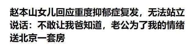 ?????? 看来无论是普通人还是富二代星二代,每个人都有自己的苦衷吧,但不管怎么样,人都要勇敢向前看,不要被?????? 参考资料:?????? 极目新闻《赵本山女儿回应重度抑郁症复发,无法站立说话:不敢让我爸知道,老公为了我的情绪送北京一套房》?????? 赵本山女儿球球回应“爸爸有这么好的资源,为何不当明星”——红星新-07-2416:28