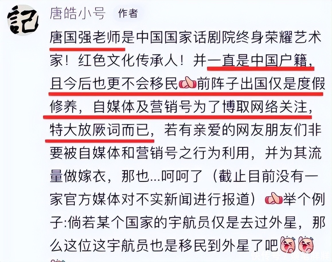 实际上,关于国籍问题,其经纪公司早已澄清,唐国强从未办理移民手续,但这类信息一旦传播,往往比真相更具传播力,导致他仍深陷舆论漩涡。