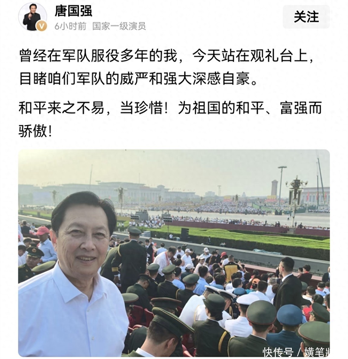 阅兵结束后,他在社交平台发文,表达了对和平的珍视和对国家的骄傲。