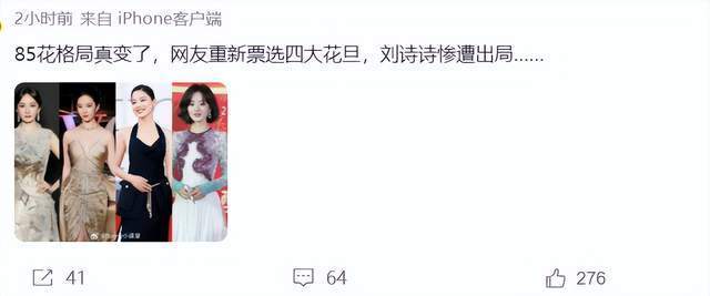 最初,网友们评选花四大花旦是:刘诗诗、杨幂、刘亦菲、赵丽颖,当辛芷蕾获得威尼斯影后,很多网友都表示:85花四大花旦的该重新洗牌了,结合目前的情况,大家认为刘诗诗出局。