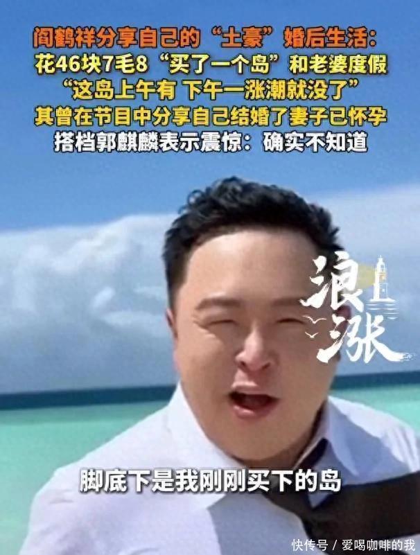 一则德云社演员阎鹤祥“买岛”的消息突然刷屏,看似荒诞的言论背后,藏着相声演员的语言艺术和现代人的生活哲学?!?#25105买了一个岛,才花!”德云社“鹤”字科演员阎鹤祥近日在社交平台上的这番“土豪式”发言,瞬间点燃全网好奇心。更让人称奇的是他接下来的描述:“这岛只有上午有,下午一涨潮就没了?!?#36825番言论立刻引发网友大规模围观。有人好奇追问购买方式,有人调侃“还找零了是吧”,还有人直呼:“这文字也太小众了!”一时间,#阎鹤祥买了座薛定谔的岛#话题热度飙升。