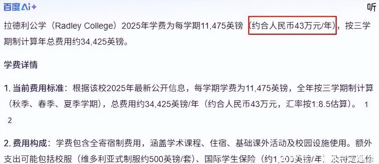 名字里的中西合璧,体现了霍家立足香港、面向全球的缩影。霍中曦此次入读的英国拉德利公学(Radley College),一年学万元人民币,但它绝非普通意义上的贵族学校。