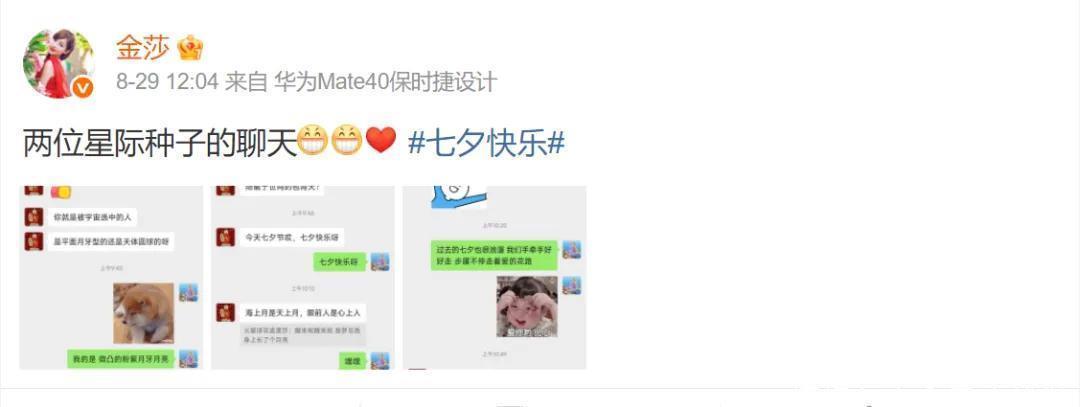 在被网友爆料深夜与神秘女孩泡吧的时候,孙丞潇分钟内连条“不是我”的澄清文,力证自己的清白。为了爱情,小男友变成大男人,把原本大女主的金莎,宠成幸福的小女人。你看七夕情人节的当天,孙丞潇用他独特的方式给金莎送了一份独一无二的宠爱。金莎在微博中撒出狗粮:两位星际种子的聊天。聊天记录中分享梦境:醒来啦醒来啦,我梦见我身上长了个月亮。孙丞潇第一时间回应:你就是被宇宙选中的人!紧接着,孙丞潇又抛出爱的宣言:海上月是天上月,眼前人是心上人!有你足以!