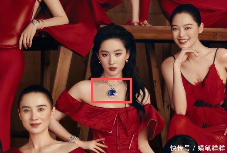 金九封面身穿Elie Saab紅色高定禮服,搭配寶格麗20克拉藍(lán)寶石項(xiàng)鏈,珠寶總價(jià)值高達(dá)3億。