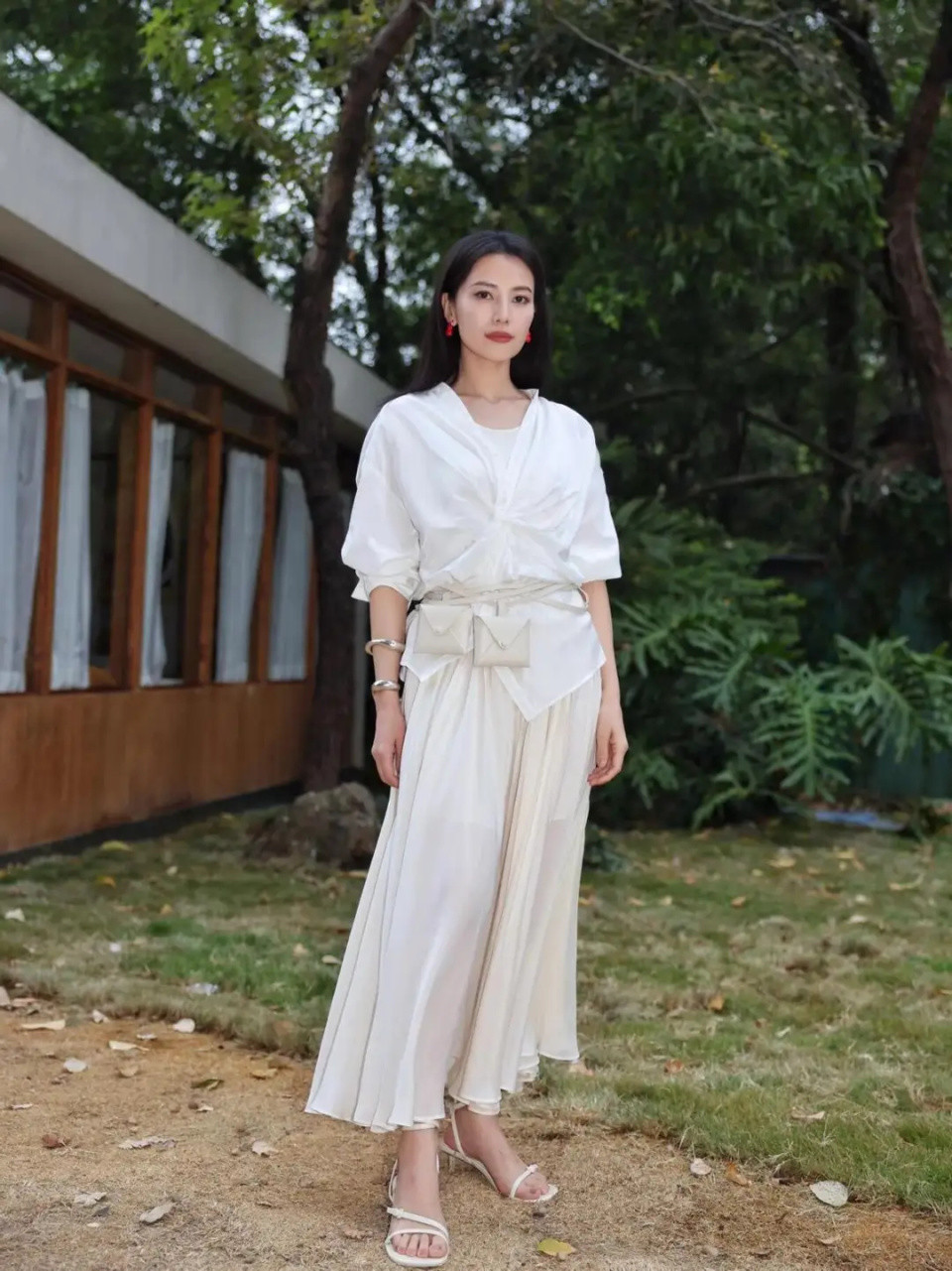 選擇白色襯衫,不挑人,不挑年齡,更不挑膚色,如果想要更得體一點的穿搭風格,可以借鑒下面這1套打扮方式,用一件白色襯衫內(nèi)搭白T恤,加上白色的散裝半身裙,腳上穿的一雙白色的高涼鞋,這樣的穿衣造型就很優(yōu)雅,而且顯得比較得體大方。