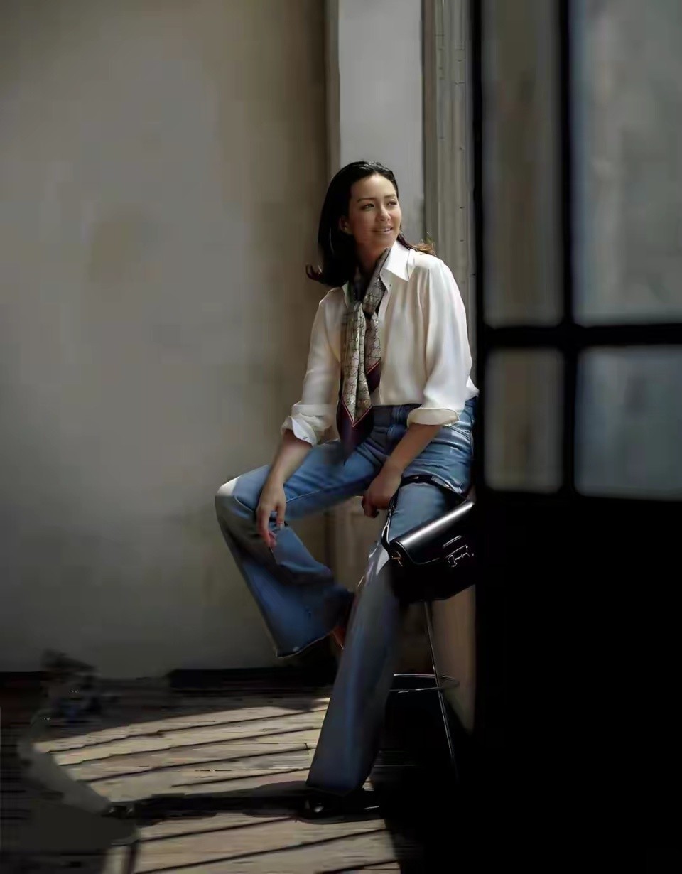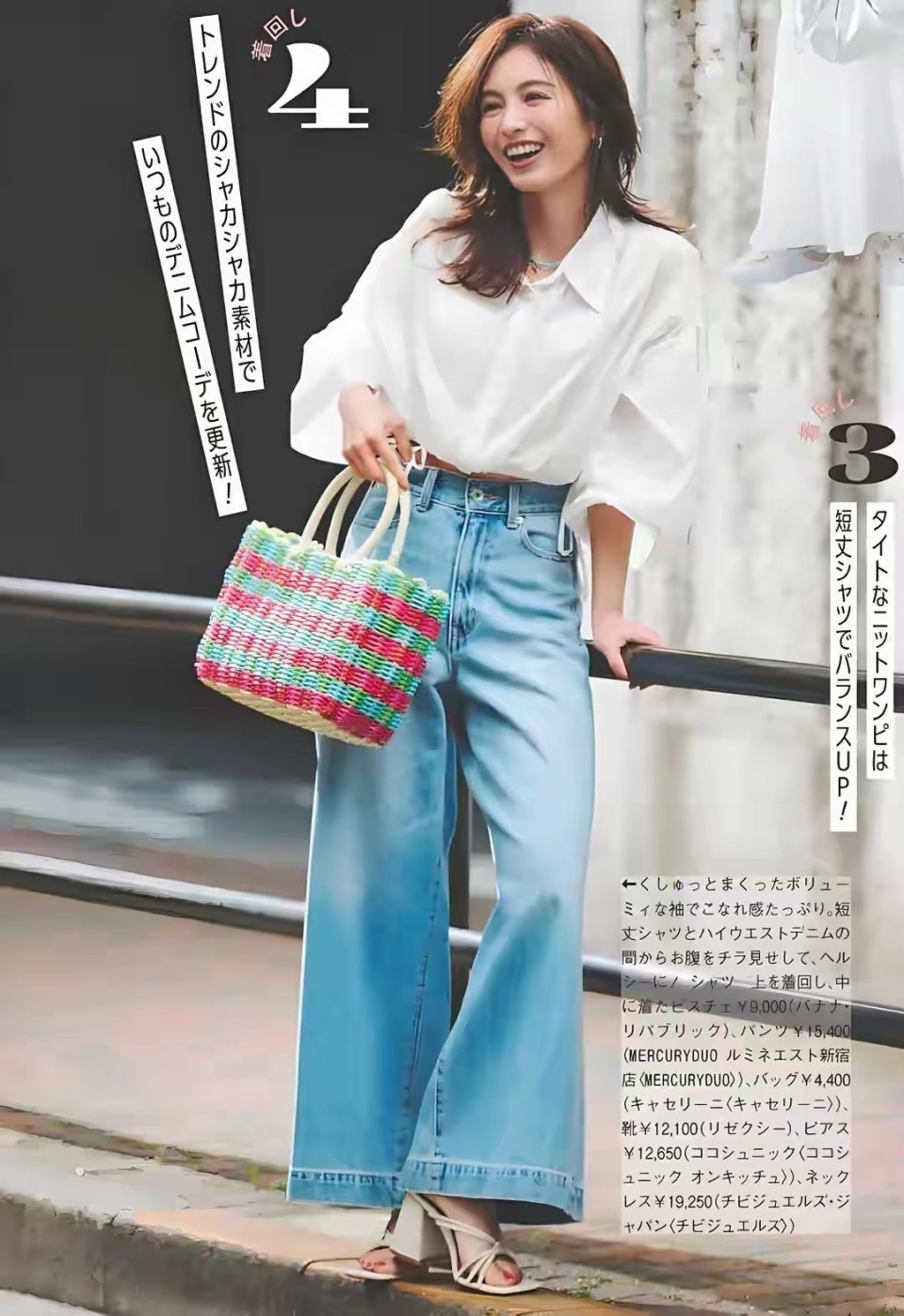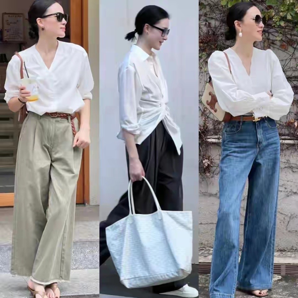 當然啦,穿白襯衫不光可以和裙子搭配,比較有女人味,我們還可以選擇長褲來組合,例如下面這位達人直接選擇一件經(jīng)典款的白色襯衫上衣,搭配上牛仔闊腿褲,腳上穿的一雙高跟涼鞋,穿的時候還要把襯衫的衣角塞進褲子里面,就能很好的提升腰線,這樣的穿衣打扮顯得通勤又時髦,不管穿去上班,逛街,約會都沒有任何問題。