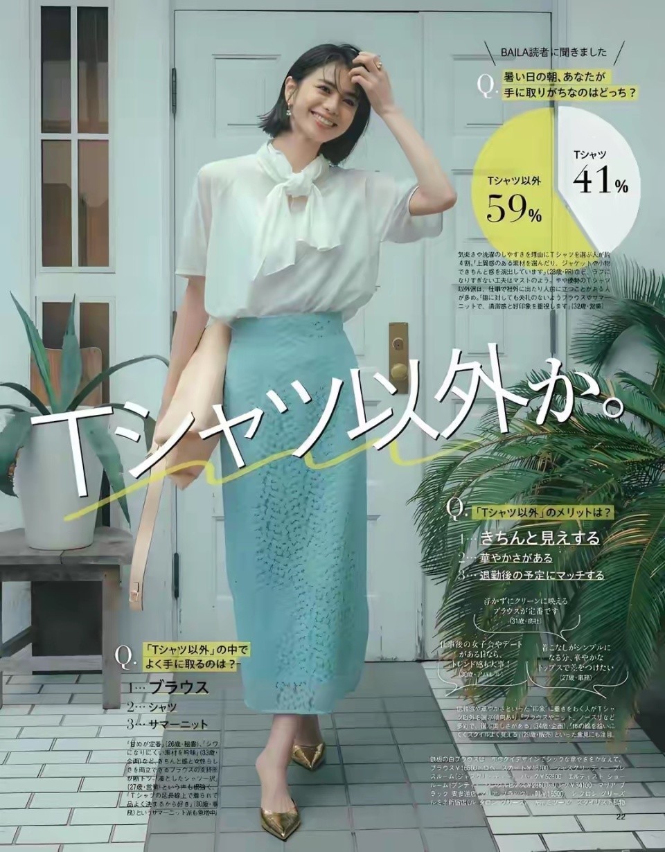 而且為了能更好的展現(xiàn)自己的美腿,下半身的裙子采用的是開叉的款式,走起路來若隱若現(xiàn),當然啦,也是為了更涼快,同時,襯衫上衣的材質(zhì)也是半透明,薄款的襯衫上衣穿在身上自然不會悶熱。