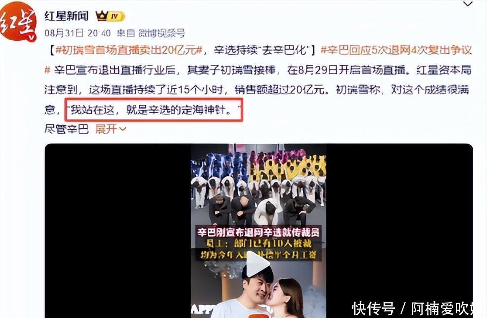 但也正因为他是这样一个充满争议又极其高调的人物每次一有风吹草动就容易引发各种猜测比如这次𱑤日直播时突然宣布退网理由是肺部出了问题需要休养账号和公司交给初瑞雪打理。结果他老婆确实强悍接过账号第一场直播就干个小时销售额突亿还放话“我站在这就是辛选的定海神针”