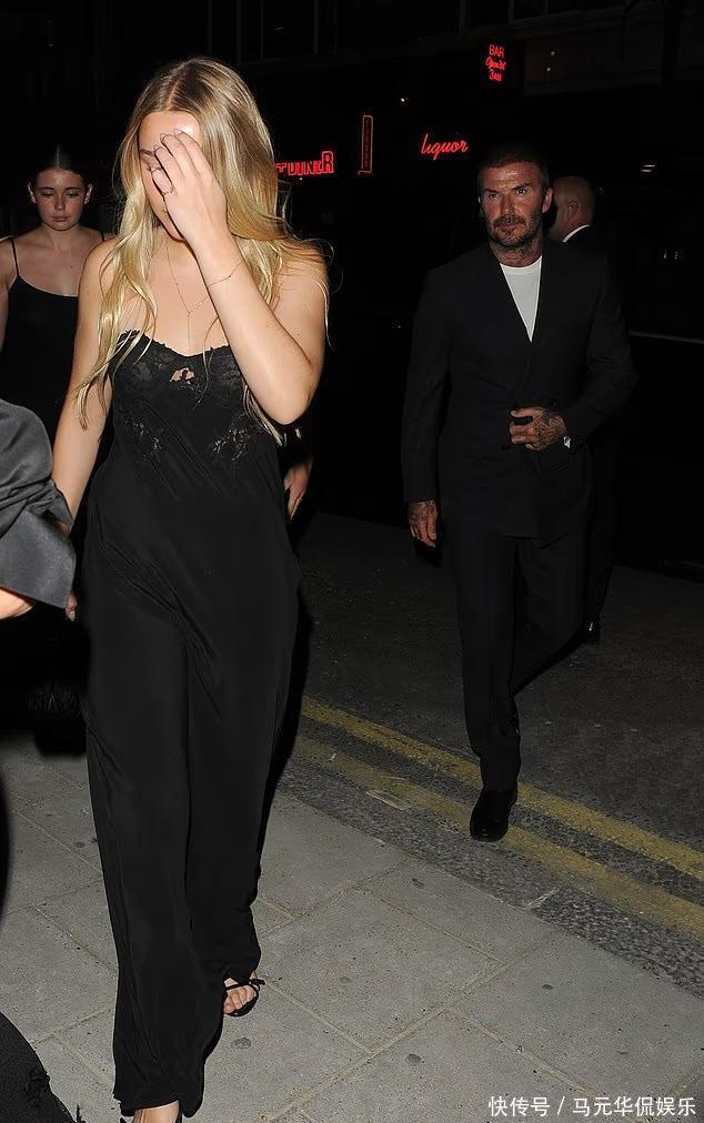 披散着一头金发的小七,当天穿了一件蕾丝风格的黑色吊带裙,乍一看有点儿像成熟女性所穿的睡裙,估计应该是其母亲维多利亚·贝克汉姆的时装作品。这样的裙子穿在时髦辣妹的身上,应该是引不起什么关注的,但穿在还没有成年的女孩的身上,就显得有些违和了,为此一些英国网友也是发出了质疑的声音,“如此可爱的一个女孩,为什么要打扮成那般?”