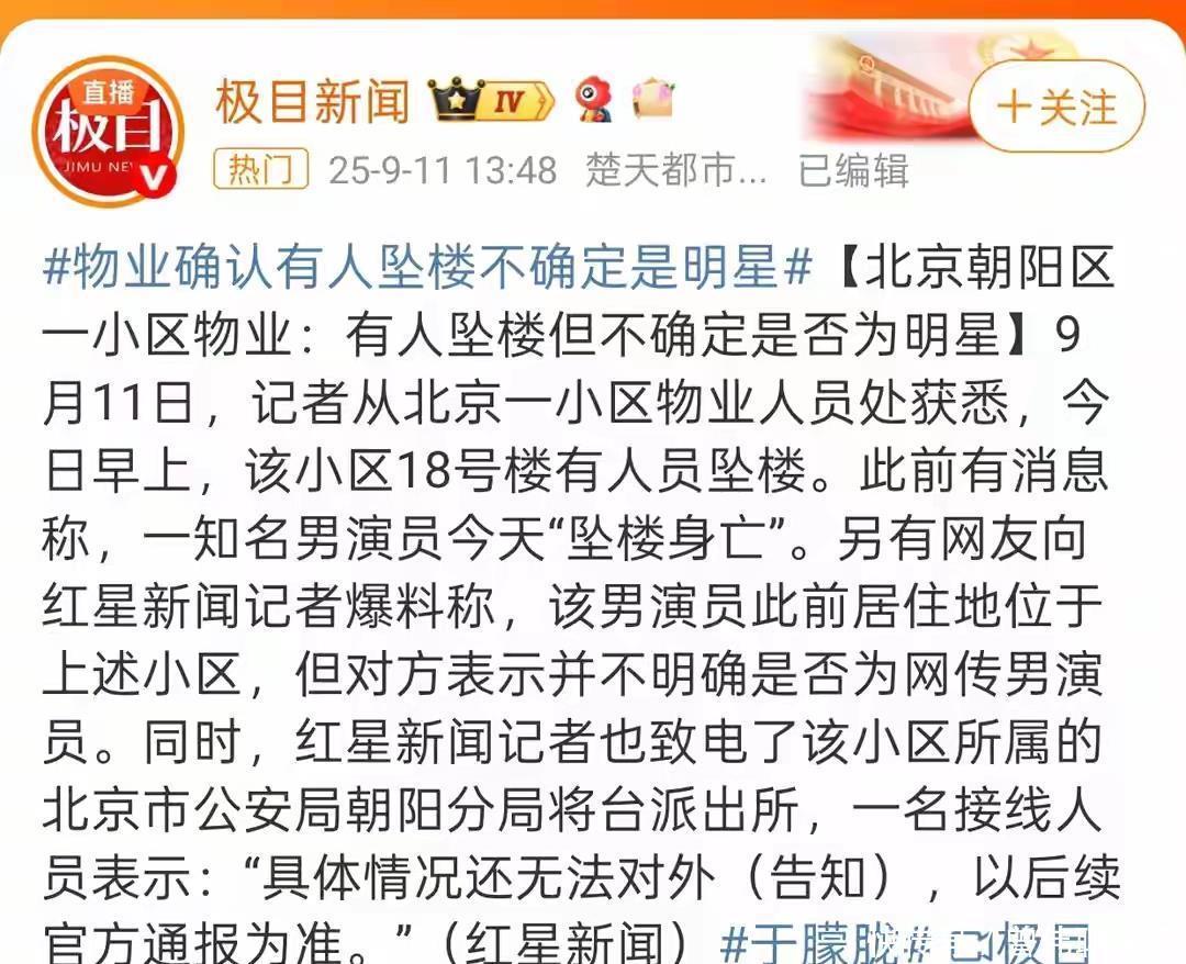 于朦朧和他的工作室都沒有說話,他們好像消失了一樣,這更讓人覺得奇怪,事情好像是真的。小區(qū)物業(yè)說,那天確實(shí)有人掉下去了,但是他們不知道是不是明星,他們不能亂說,警察也說有人墜樓了,但是他們還在調(diào)查,也不能說太多,物業(yè)和警察的話,好像和狗仔說的一樣,大家更害怕了。
