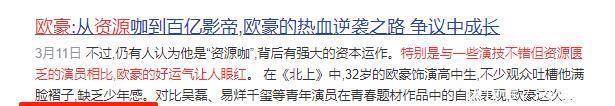 ?????? 而是把大部分精力放在拍戲上,選秀出身的他,深知“偶像”標(biāo)簽的局限性,因此在轉(zhuǎn)型演員的道路上格外努力。?????? 再者,歐豪的資源并不是“硬捧”來的。?????? 所謂“資源咖”,往往是指演技平平卻靠資本或背景強(qiáng)行上位的藝人,而歐豪顯然不屬于這一類。