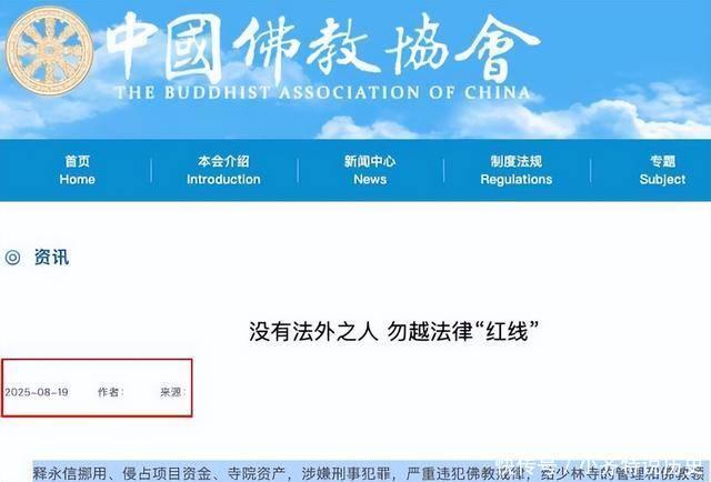 尤其是8月19日的發(fā)文,盡管釋永信被抓已經(jīng)23天了,但佛協(xié)對(duì)他仍舊怒氣未消。一篇《沒有法外之人,勿越法律“紅線”》的文章,再次拉釋永信出來鞭尸。