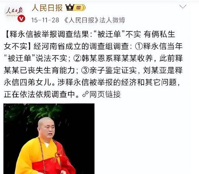 官媒再出手,釋永信哪里逃? 回顧12年前的舉報(bào),釋永信被人檢舉,六根不凈,有私生子。結(jié)果當(dāng)時(shí)老和尚藏得深啊,官方調(diào)查一番也沒有把他揪出來。