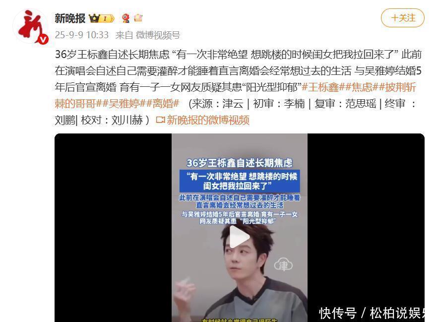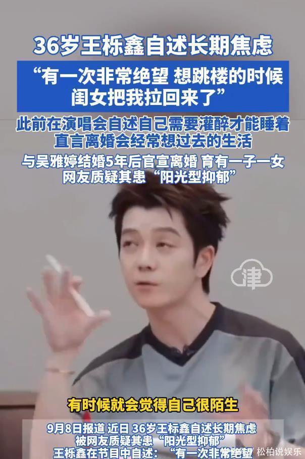 雖未直接回應(yīng)王櫟鑫的焦慮癥情況,但吳雅婷透露了關(guān)鍵信息:離婚后兩人聯(lián)系甚少。這意味著她對前夫的心理健康狀態(tài)并無直接了解。不過她亦強調(diào),兩人“共同撫養(yǎng)孩子”的關(guān)系未變,并傳遞了基本關(guān)懷。這種既保持距離又維持協(xié)作的態(tài)度,堪稱離婚夫妻的理性范本。而風(fēng)波的另一端,王櫟鑫在節(jié)目中的自述更令人揪心。36歲的他坦言長期受焦慮困擾:重大演出前頻繁做噩夢,擔(dān)憂舞臺事故,甚至需要灌醉才能入睡。最震撼的是他透露“曾因絕望想跳樓時被女兒拉回”的經(jīng)歷,正是這個瞬間,讓網(wǎng)友質(zhì)疑他患上“陽光型抑郁”——那個在舞臺上活力四射的歌手,背后卻藏著如此沉重的掙扎。