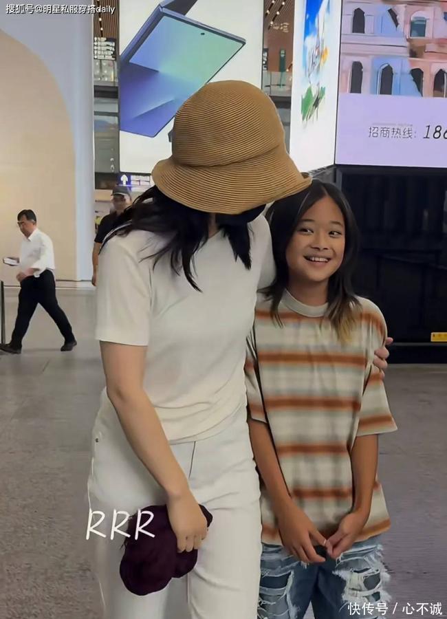 母女倆的搭配默契也很值得學(xué)!梅婷的白褲子搭小白鞋,女兒用白鞋呼應(yīng),條紋T恤和破洞褲的休閑感平衡了年齡差,各自穿得舒服又不違和。親子裝不一定要一模一樣,配色和風(fēng)格細節(jié)上“打暗號”反而更有巧思。