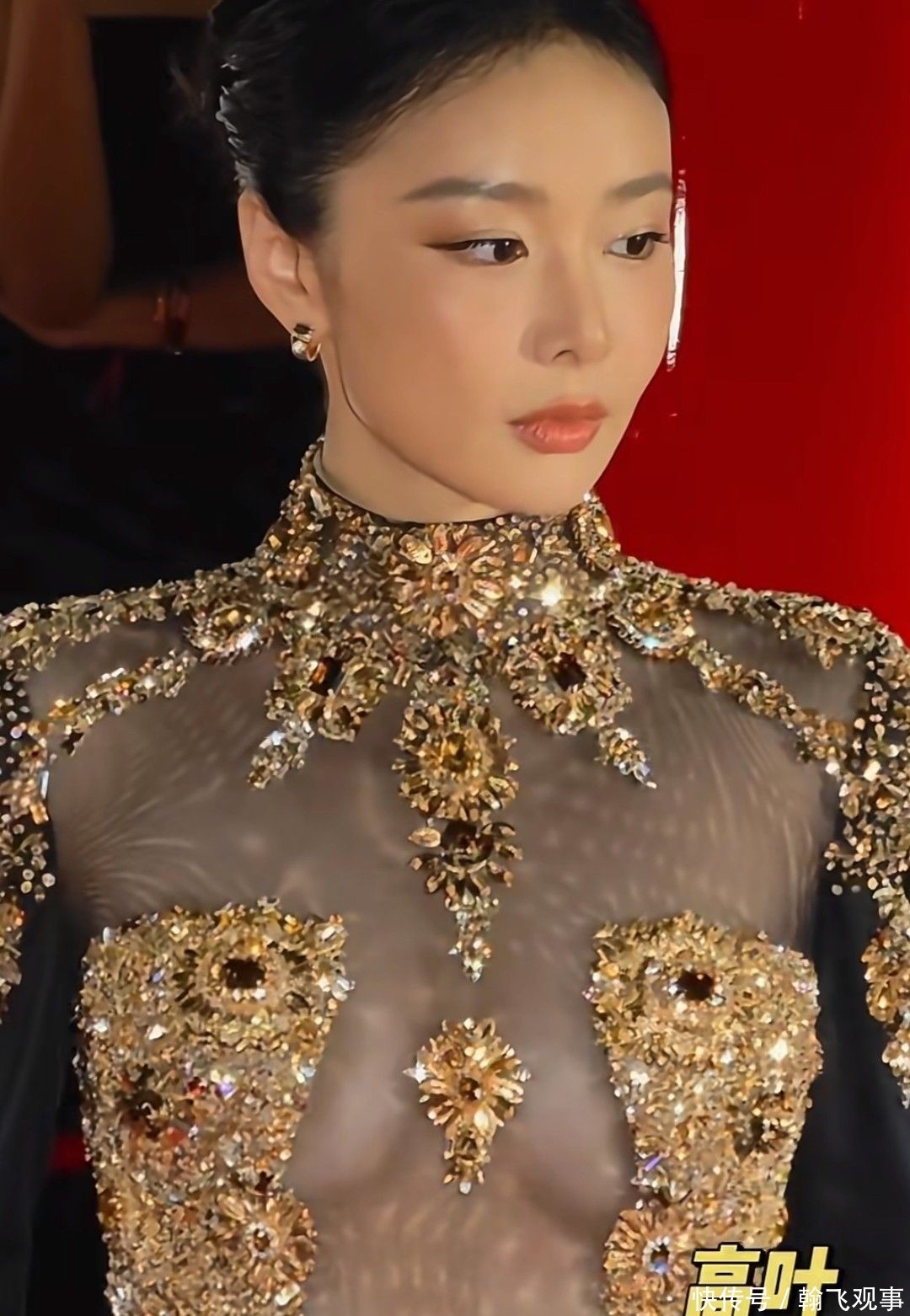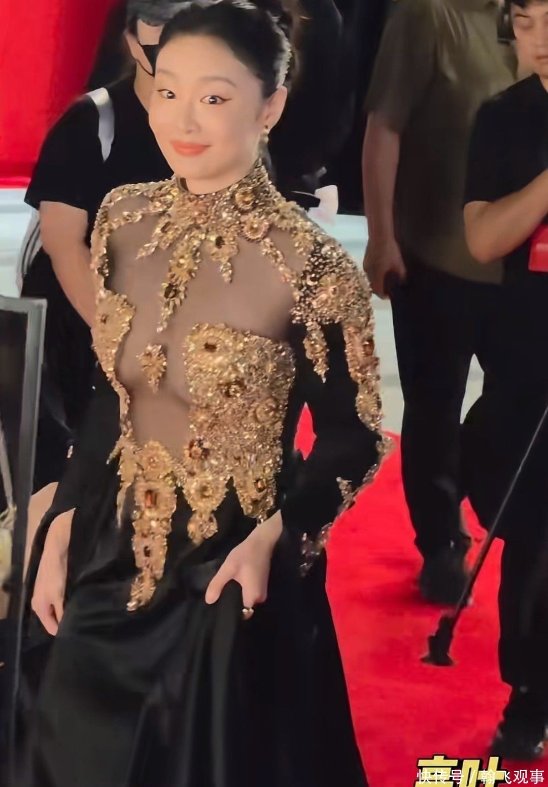 当天晚上,38岁的高叶却略显用力过猛,当其他嘉宾均以深色系礼服亮相时,她选择了一袭露背金色礼服登场。