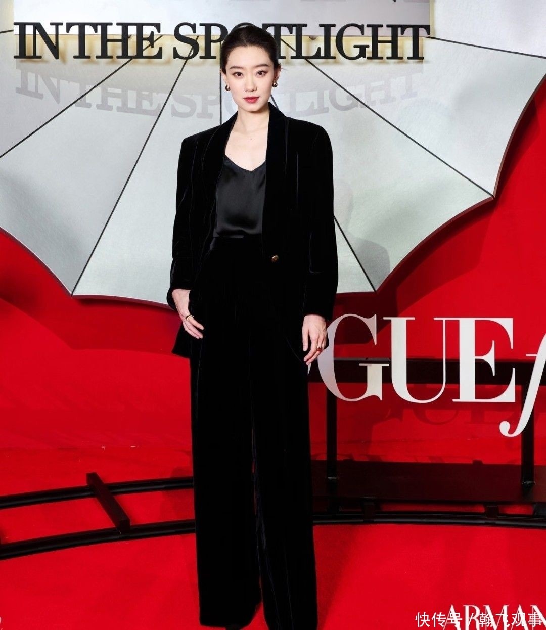 随后她也出席了阿玛尼品牌活动,整体造型干练简洁,盘发设计露出全脸,搭配黑色西装与西裤,走的是中性风格路线,与宋佳的风格颇为接近。