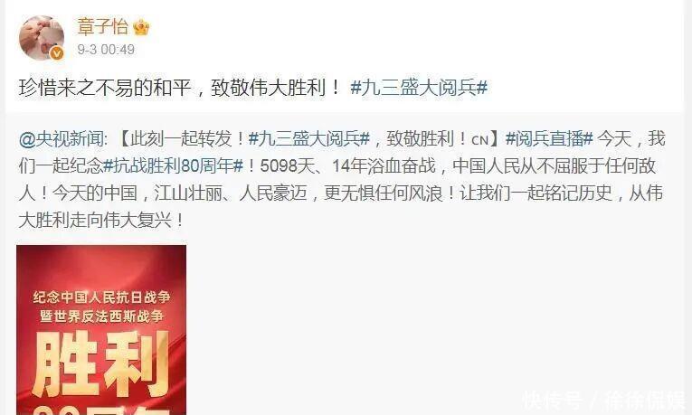 这种指责忽略了一个基本事实 —— 章子怡在阅兵当天凌晨就已转发胜利日海报表态,只是保持了她一贯言简意赅的风格。从官宣离婚时的十一个字声明,到日常社交的短句配图,简练本就是她的表达习惯,却在此次事件中被曲解为"区别对待"。