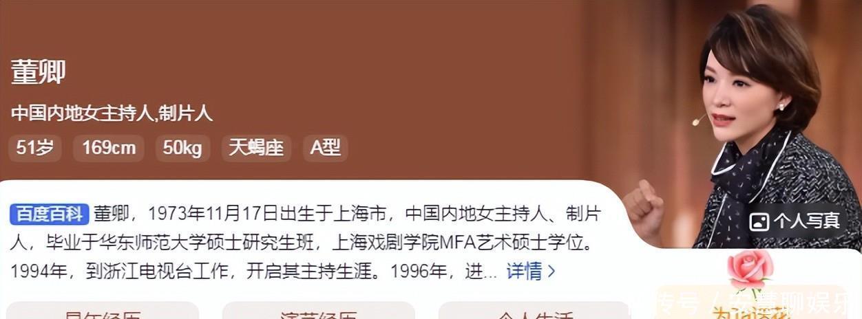 董卿就这样小心翼翼的生活着,好不容易等到了上小学,觉得终于能解脱了。结果因为成绩太好了,董卿连跳两级,很快便进入了中学。当时父母工作变动,她跟随父母去了嘉兴一中。