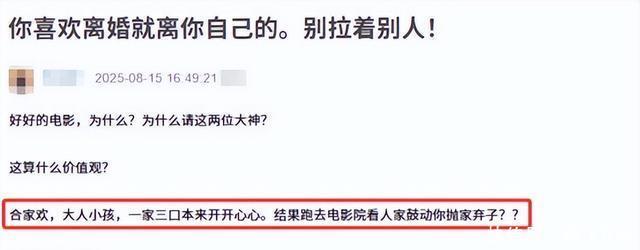 ?????? 這其中,有兩個(gè)被惡意曲解的點(diǎn)。?????? 一個(gè)是傅首爾的觀影感受被斷章取義,扣帽子、潑臟水。?????? 二是電影官方被有意或無意地卷入輿論風(fēng)暴。?????? 傅首爾沖上熱搜后,電影官方評(píng)論區(qū)立馬就變得罵聲一片。?????? 說他們宣發(fā)三觀不正,故意營(yíng)銷“離婚議題”。