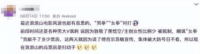 ?????? 此前,浪浪山就因?yàn)椴实爸戮础逗谏裨捨蚩铡?,被輿論惡意發(fā)酵,引導(dǎo)說是“辱女”。?????? 這口黑鍋直接砸下來,就跟扣在蘇敏和傅首爾腦袋上的臟帽子一樣。?????? 同樣的套路,如出一轍。?????? 只不過那時(shí),輿論的風(fēng)向是呼吁女性觀影群體,不要去看這部電影。