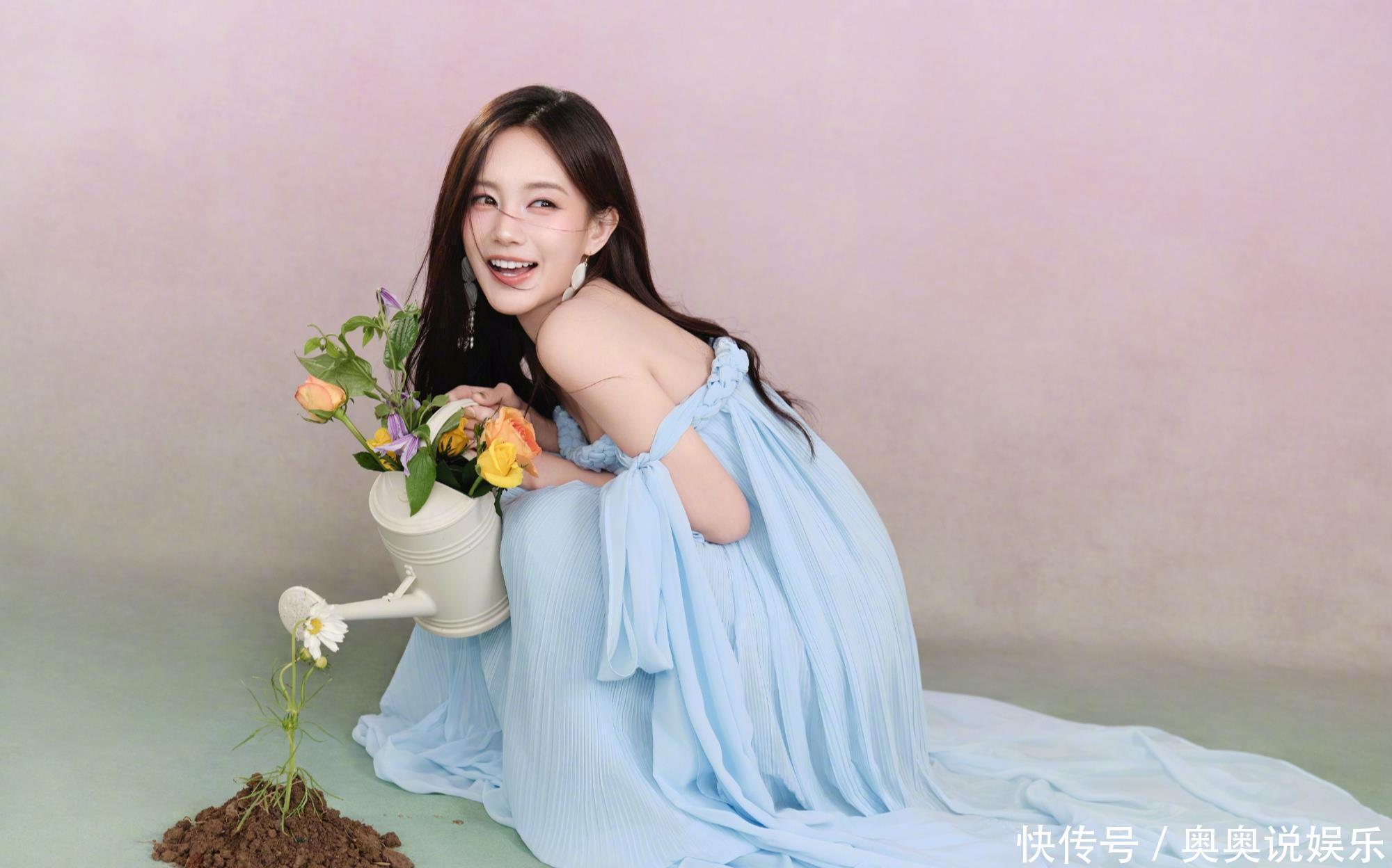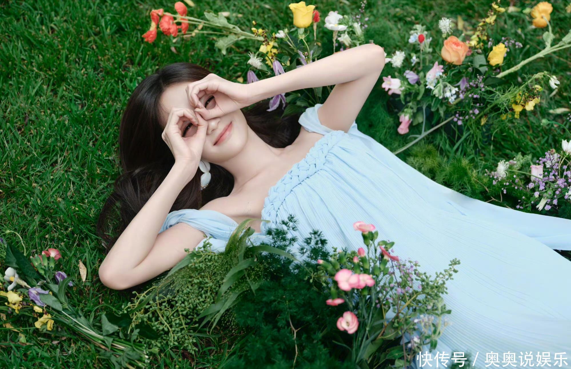 李一桐曬生日照 穿淺藍(lán)長裙躺草地笑得好甜美 完全不像35歲