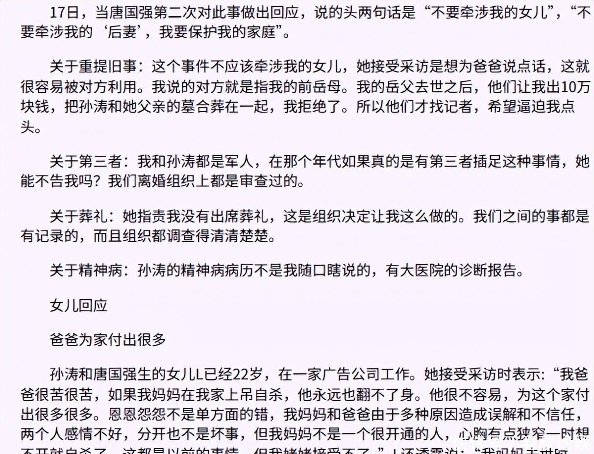 后來(lái)唐國(guó)強(qiáng)澄清稱系遭前妻家人訛詐未果所致,其與前妻所生女兒也站在他這一邊。