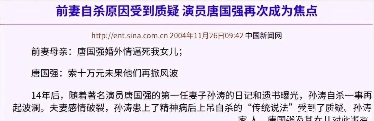 首當(dāng)其沖的便是唐國(guó)強(qiáng),其前妻1990年在家自殺,遺書(shū)中控訴其婚內(nèi)出軌。
