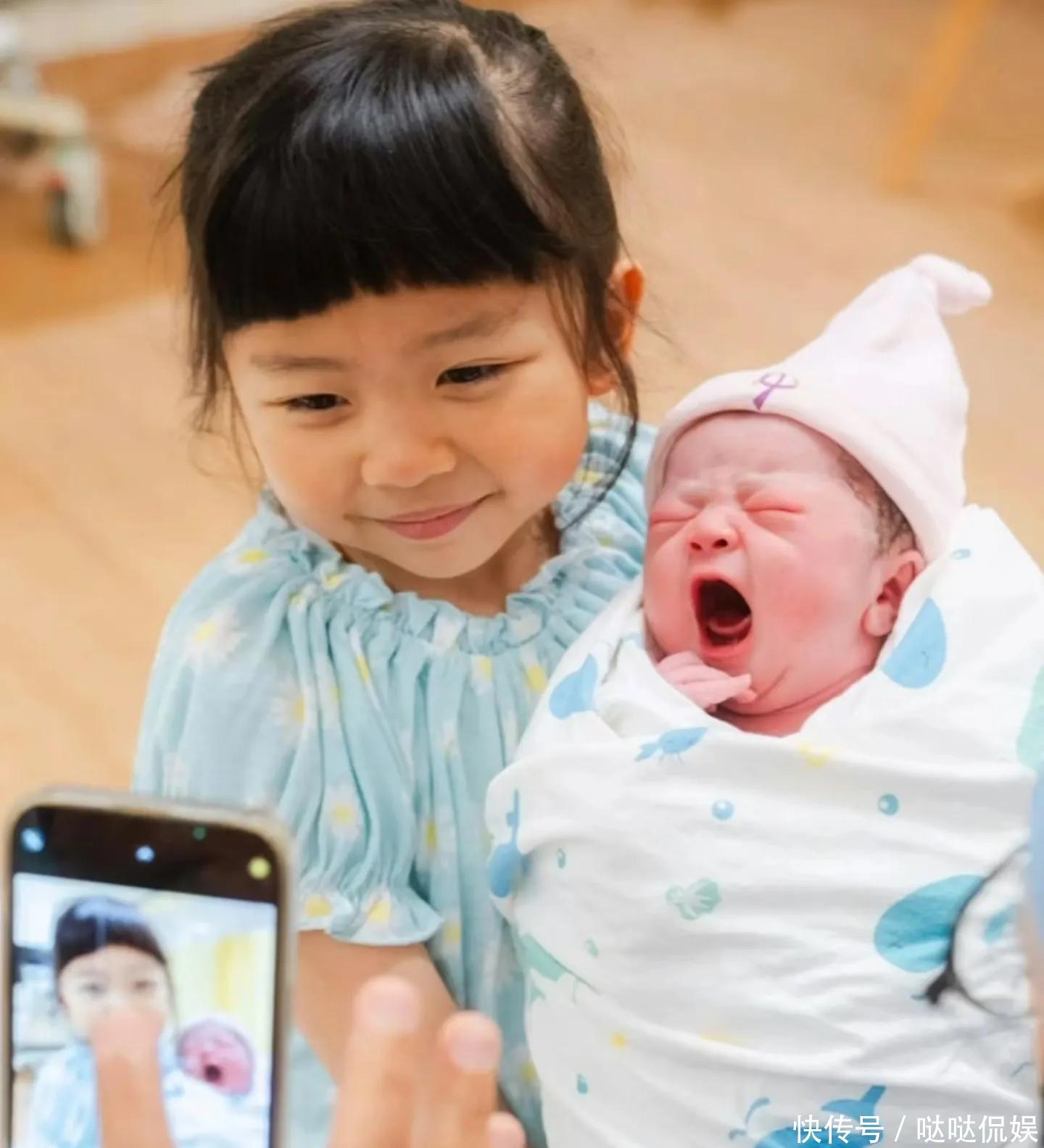 姐妹倆都好白,特別是剛出生的二胎寶寶,皮膚白皙像媽媽,看著超級可愛。姐姐對妹妹的愛真的太明顯了,夫妻倆說大女兒央求想有個伴應該是沒錯的。