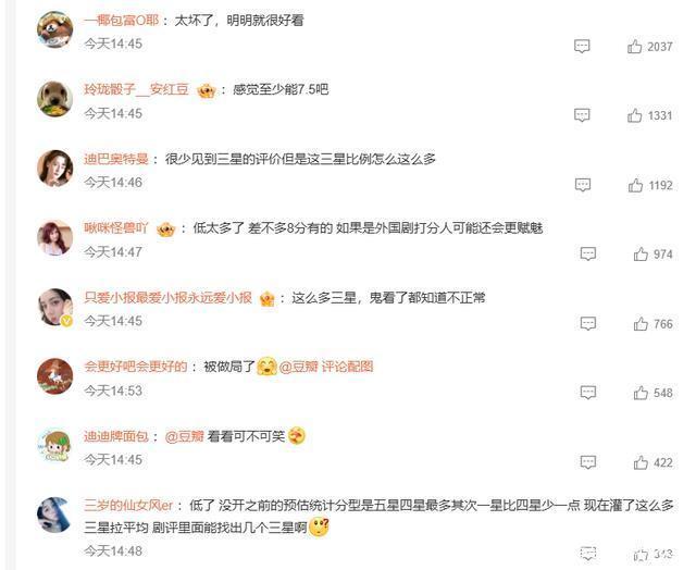 ?????? 對于這個粉絲,迪麗熱巴金世佳粉絲肯定不滿意,表示質(zhì)疑,不斷吐槽平臺。覺得故事不錯,演員表現(xiàn)也不錯,這個粉絲偏低,值得八分以上。 ?????? 但輿論普遍認(rèn)為網(wǎng)絡(luò)打分高分的不一定是好作品,低分的一定是不好的作品。其實六分多的評價也不算很低,好歹及格,而且在當(dāng)下影視圈,這個分?jǐn)?shù)相當(dāng)普遍,也代表了觀眾對當(dāng)下很多劇的態(tài)度和評價。