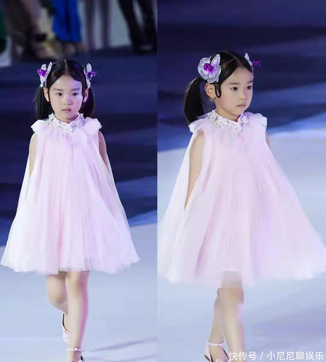 犹记第一次看她走秀,还是个攥着裙摆、眼神里带着点怯生生的小不点,步子迈得小心翼翼,却因为两个甜甜的酒窝,让整个秀场都变得柔软起来。可这次亮相完全不同——一身简约又精致的白色纱裙,裙摆随着她的步伐轻轻晃动,原本肉乎乎的小脸蛋长开了些,下颌线多了几分利落,却依旧保留着标志性的酒窝,笑起来时像盛满了星光。
