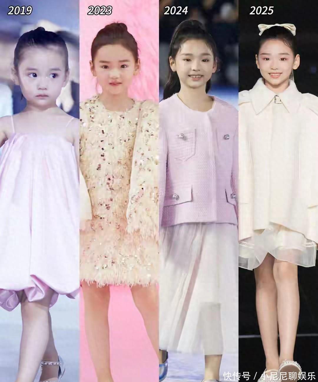网友们看了更是忍不住感慨:“这哪是长大,明明是等比例变美!”有人翻出她前几次走秀的照片对比,从第一次攥着衣角的紧张,到第三次尝试酷飒风格的突破,再到这次从容不迫的明媚,每一次亮相都在悄悄进步,却始终保留着最本真的可爱。还有人调侃:“小酒窝这星味,怕是从小喝‘星光露水’长大的吧?”
